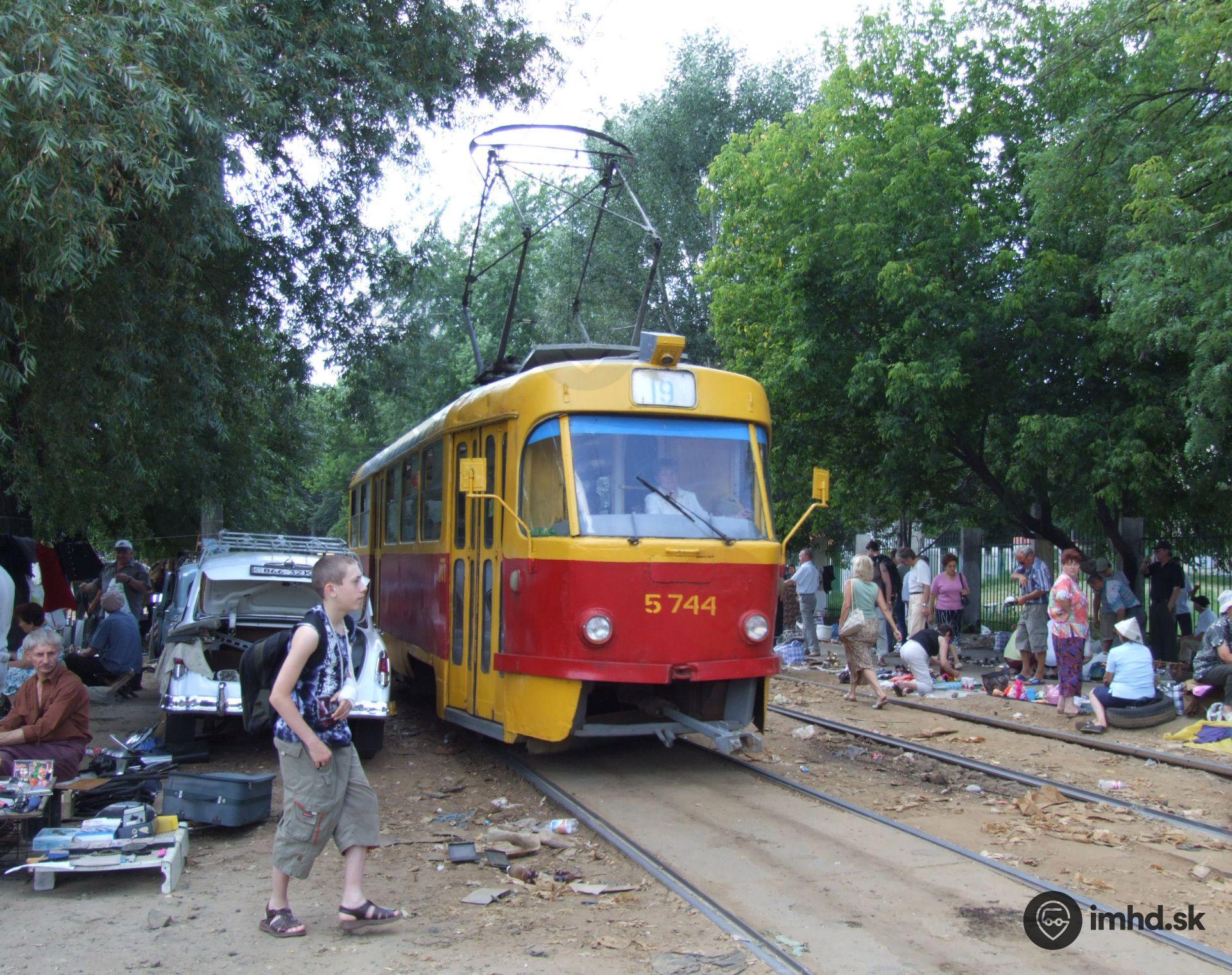 T3 #5744 uprostred trhoviska. Na pravom brehu Dnepra premávajú výlučne vozidlá T3.