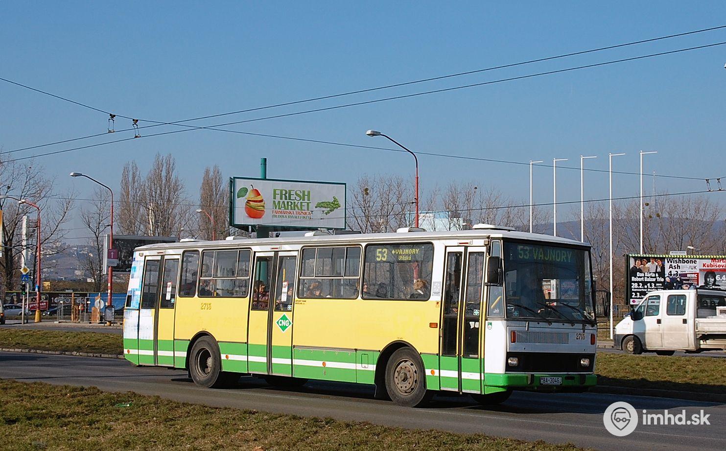 #2713 vo februári roku 2011 aj naďalej straší cestujúcich - samozrejme len vo výnimočných prípadoch, keď vo vozovni Jurajov dvor je nedostatok krátkych nízkopodlažných autobusov.