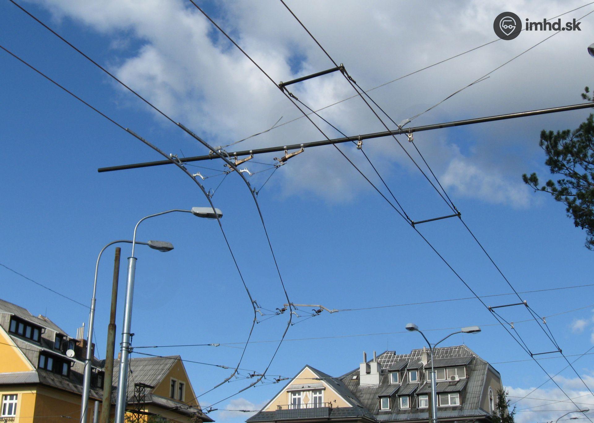 Trolejové vedenie v križovatke Hroboňova - Prokopa Veľkého.