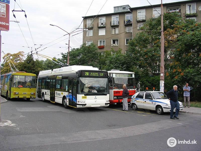 Stretnutie českých výrobkov #6296, Škoda 24 Tr Irisbus #999, #1301 a dispečerskej Škody Felície pred AS Mlynské nivy.