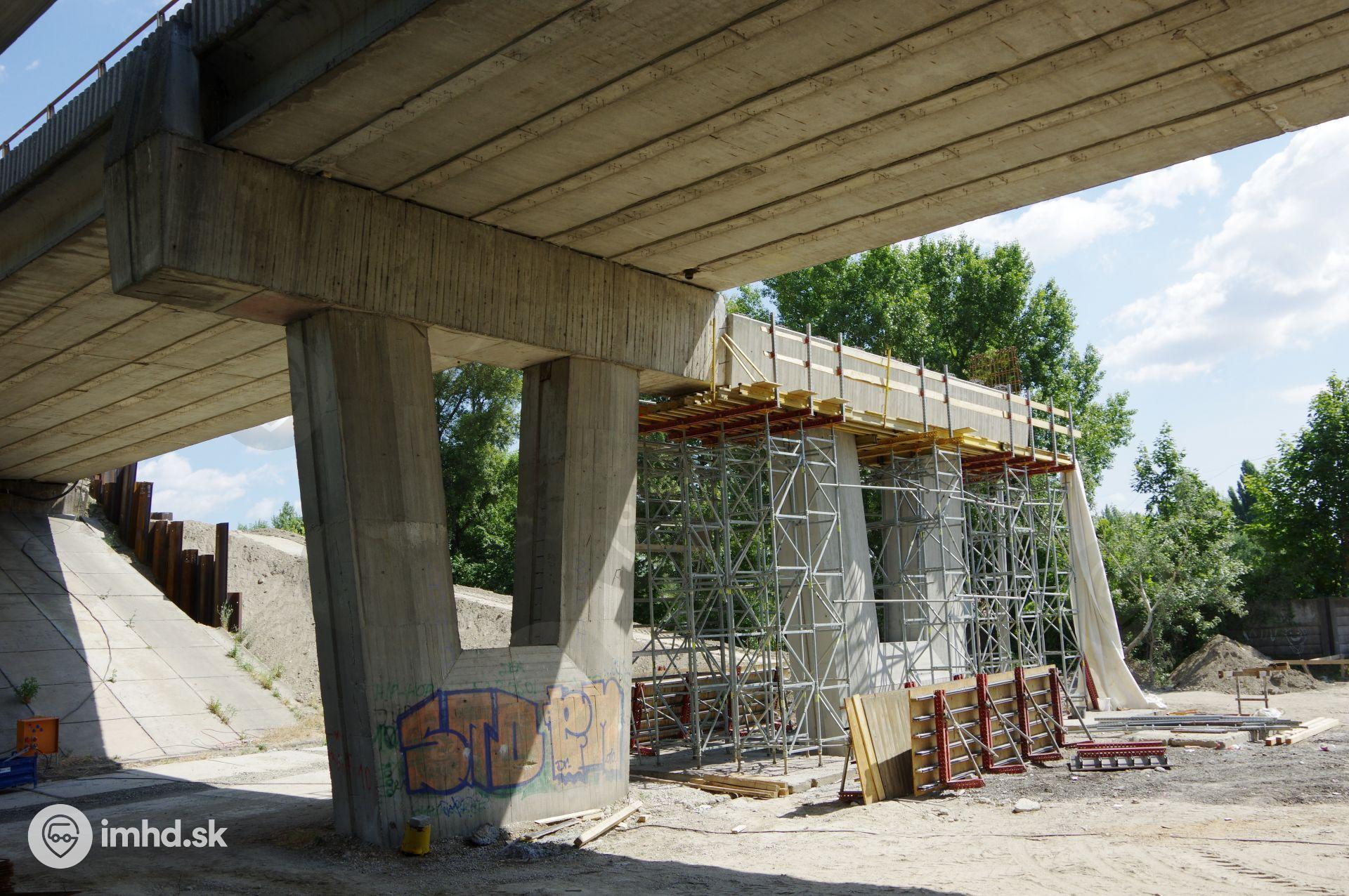 Podpery električkovej estakády Einsteinova sú rovnakého tvaru ako podpery cestného mosta