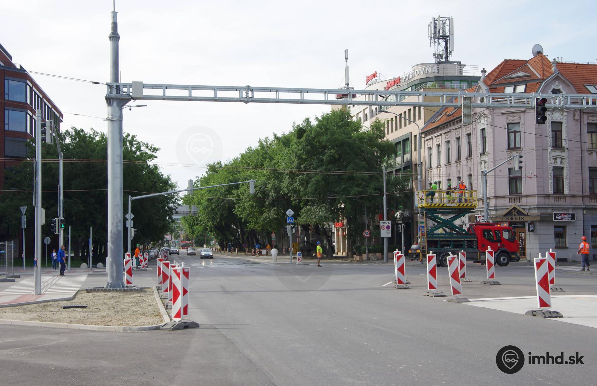 Construction o trolleybus track at Mlynské nivy (2020)