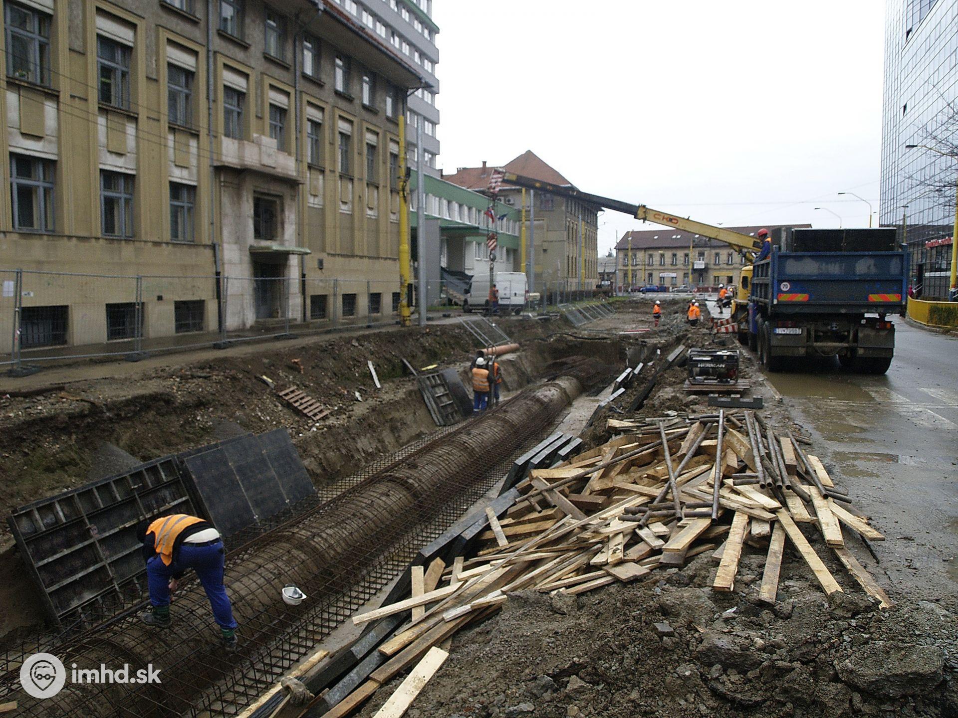 Stav Kuzmányho ulice v polovici decembra. Približne v tomto čase sa podľa pôvodného harmonogramu už malo jazdiť po novej trati.