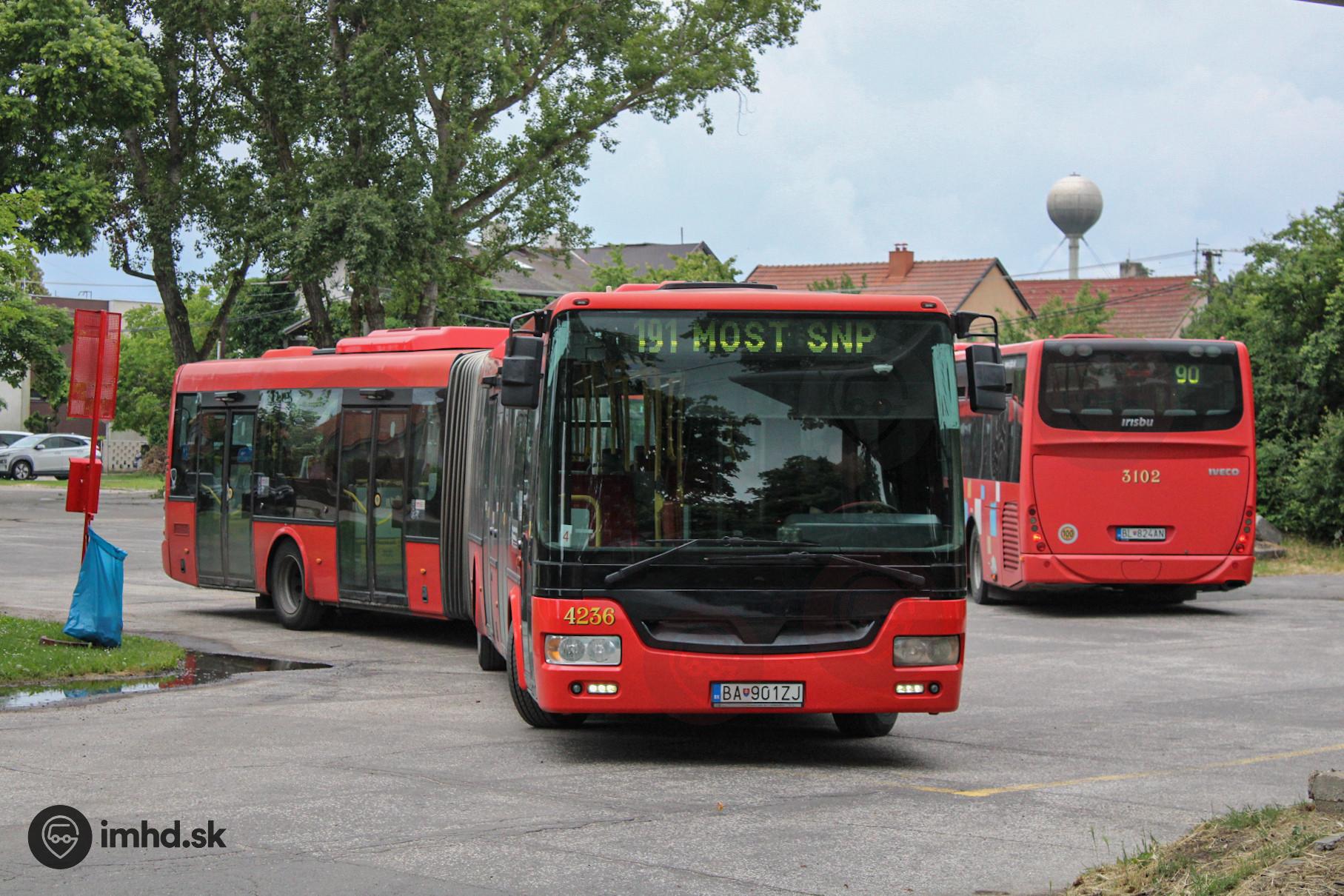 #4236 a #3102 v obratisku Kaštieľ Rusovce zastupujú najstaršie vozidlá depa Petržalka.