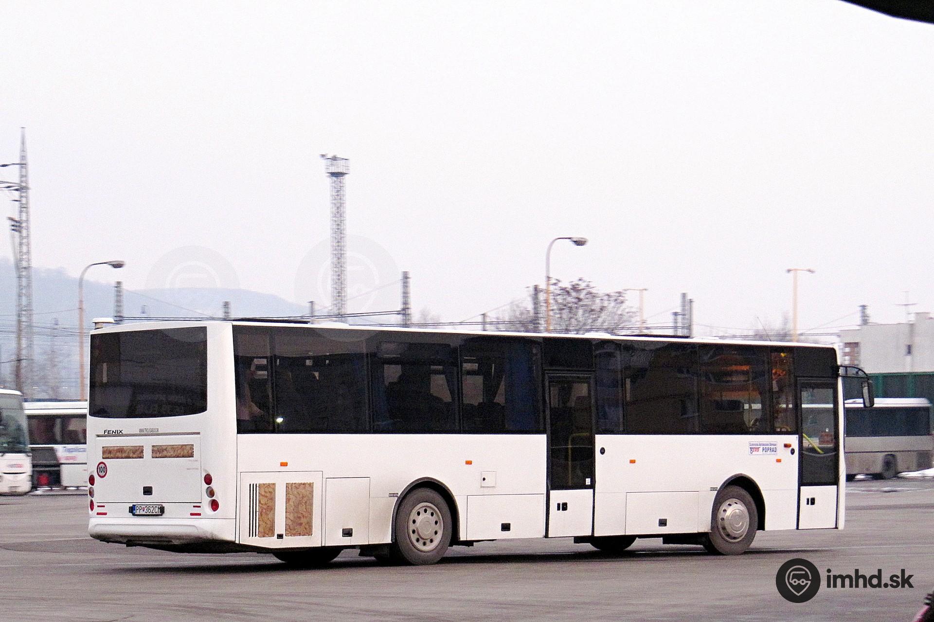 Troliga Bus Fenix #PP-362CM odchádza z košickej autobusovej stanice.