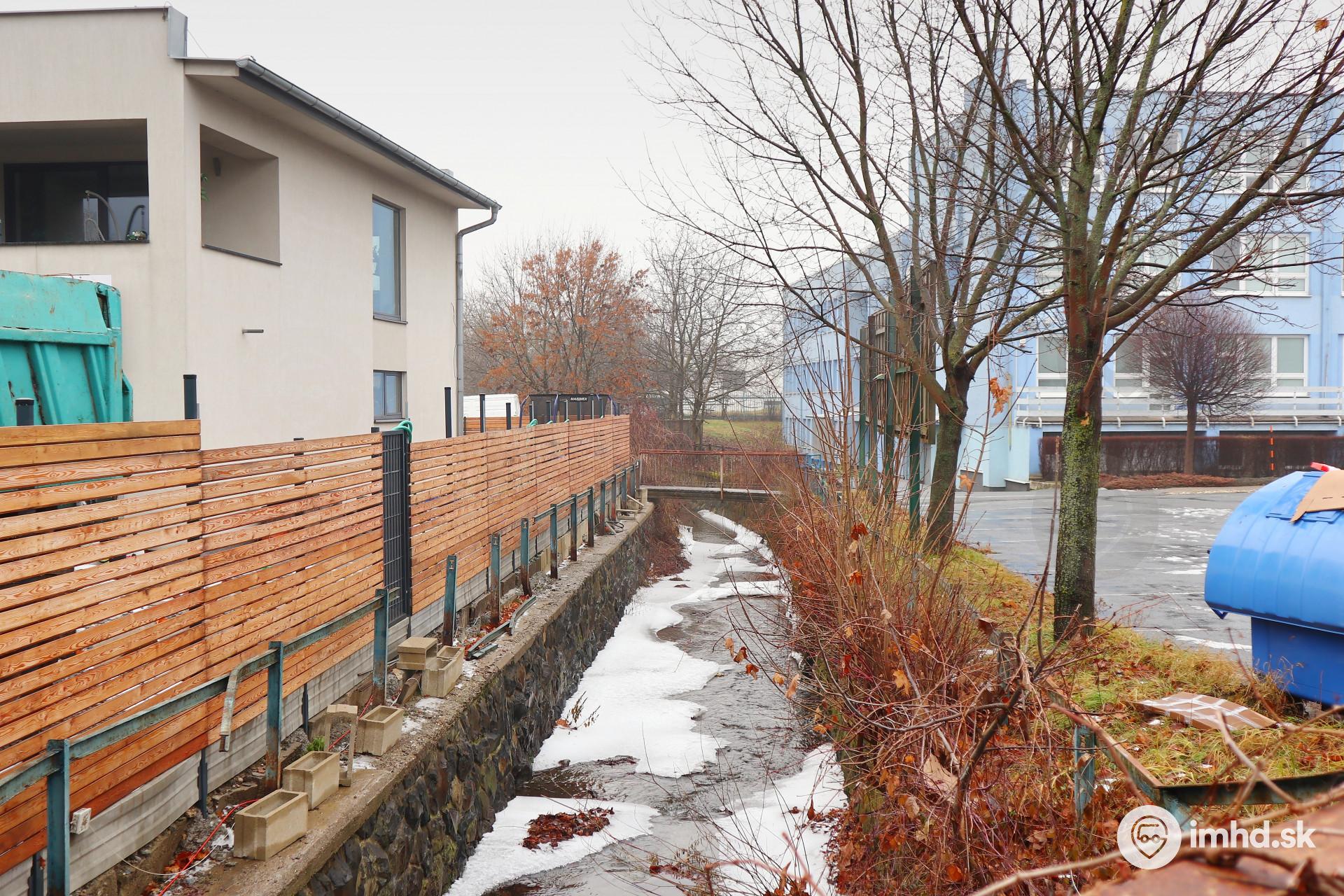 Čermeľský potok v úseku, kde obteká areál futbalového štadióna.