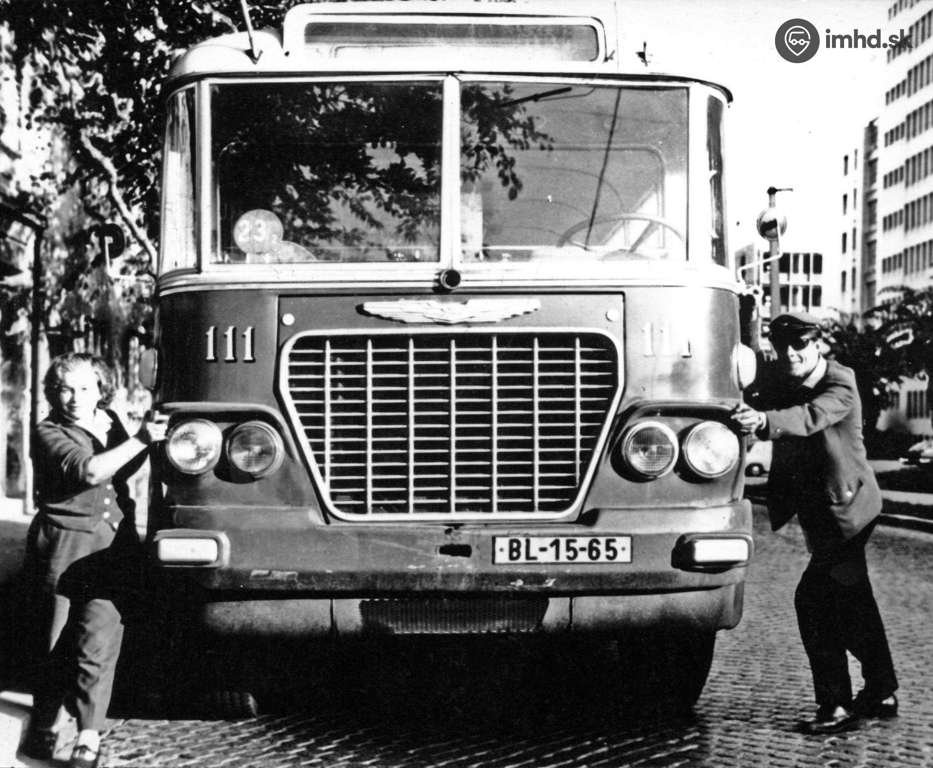 #111 so svojou posádkou a označením čísla linky, ktoré sa používalo v 60-tych rokoch