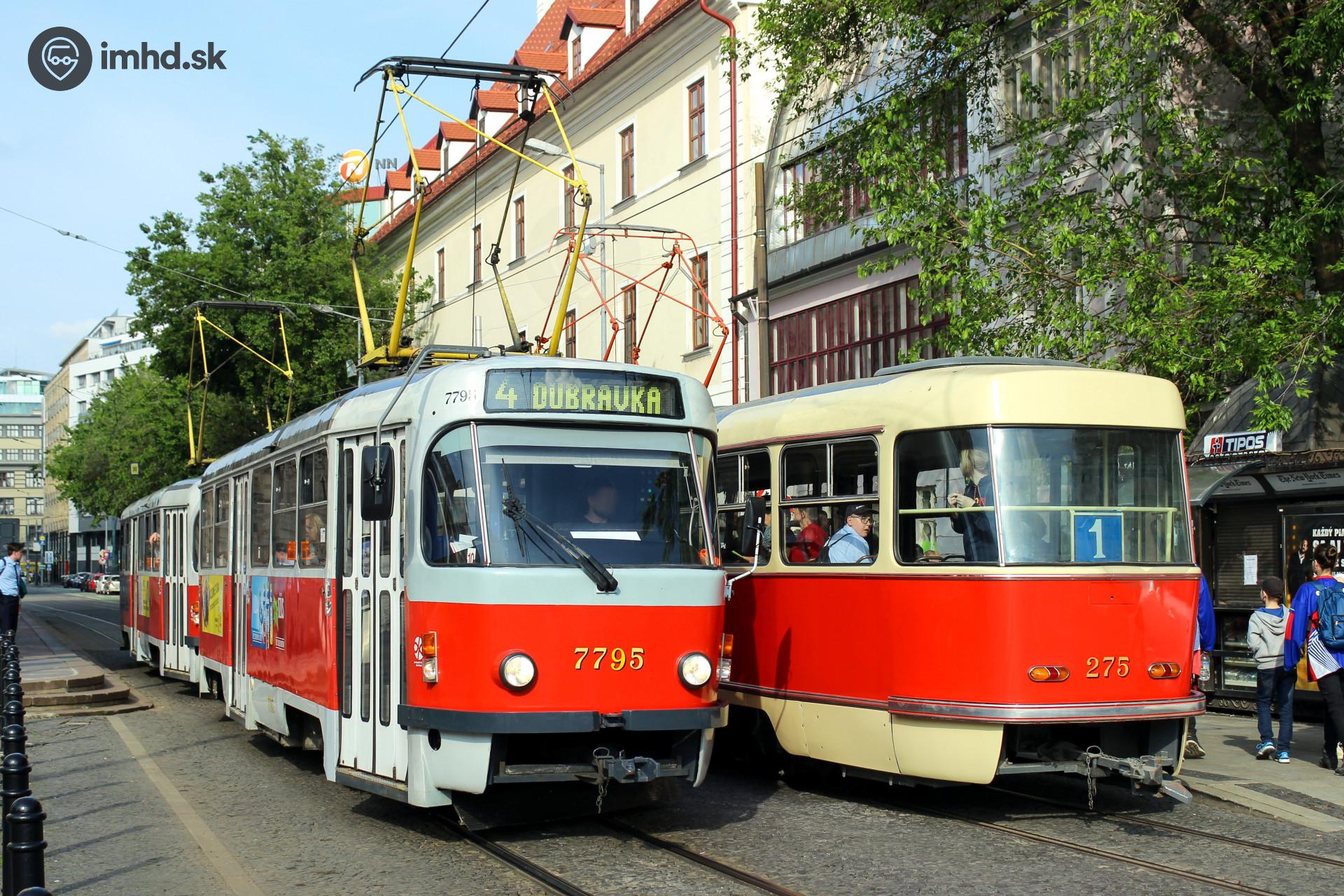 Modernizovaná a historická električka typu Tatra T3 na Jesenského ul