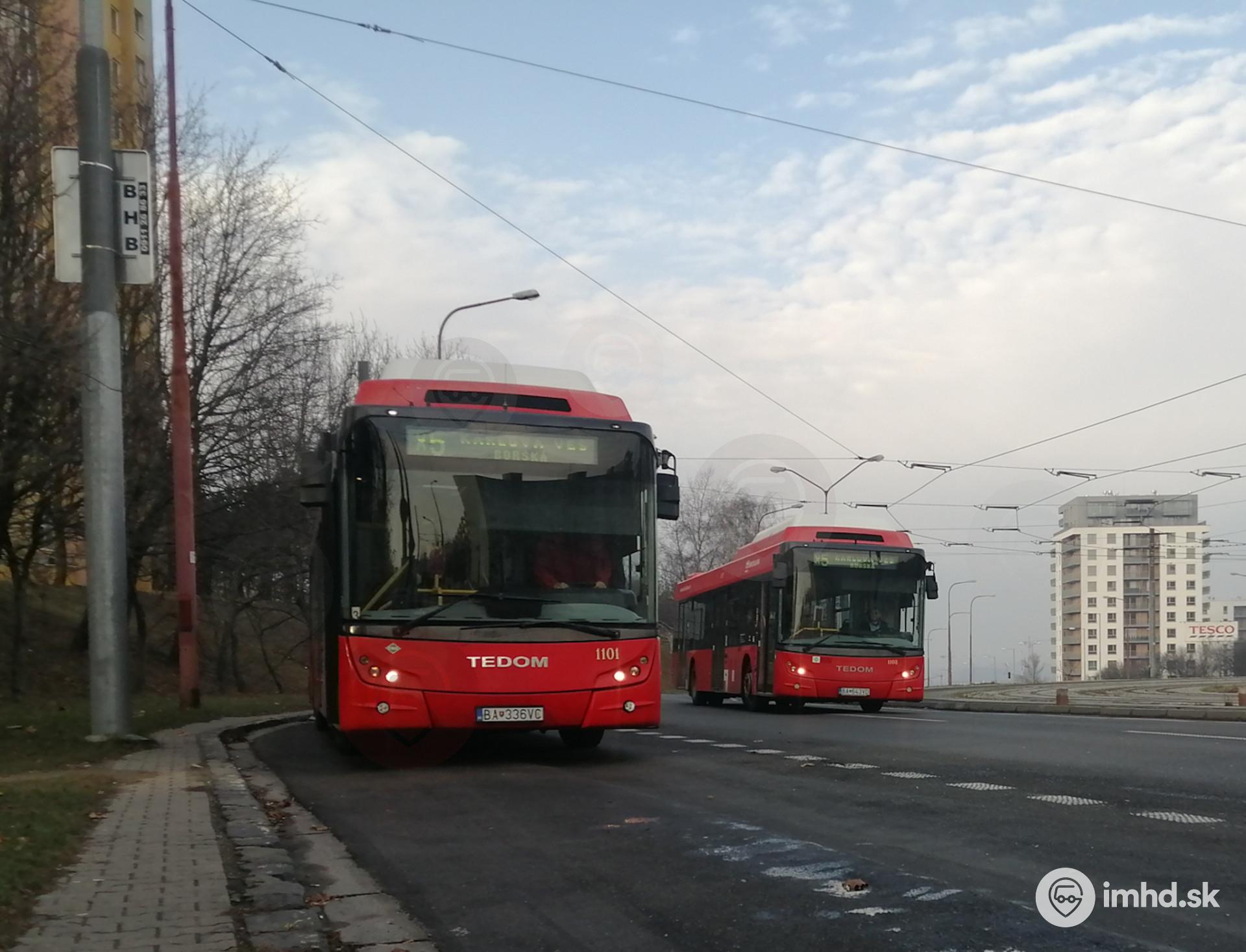 Zatiaľ čo na #1101 prebieha striedanie vodičov, okolo nich pádi #1108 na nástupnú zastávku.