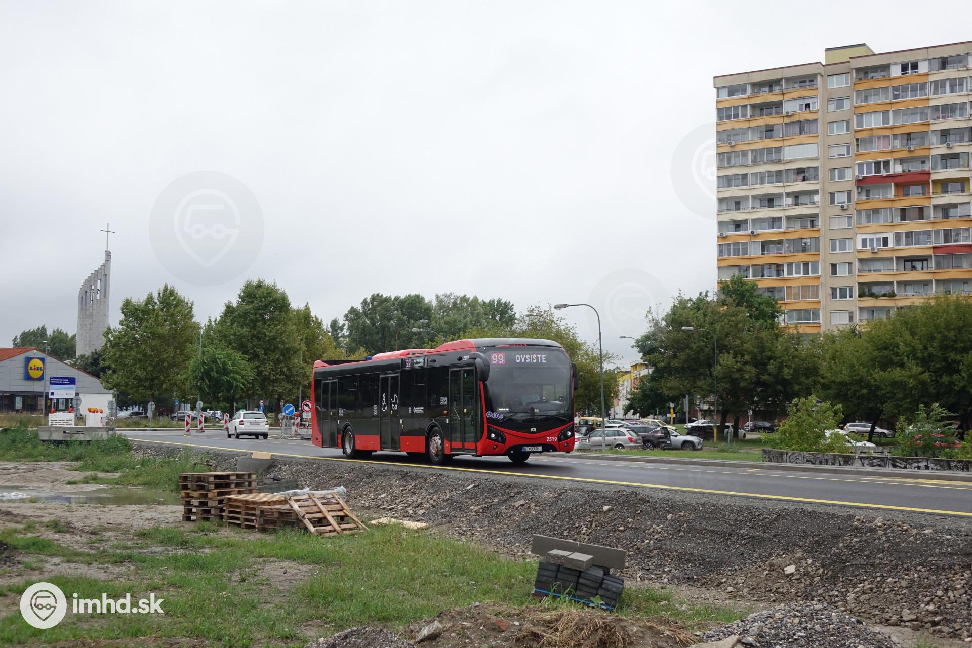 #2519 na dočasnej ceste medzi Jantárovou cestou a Betliarskou ul. počas výstavby električkovej trate.