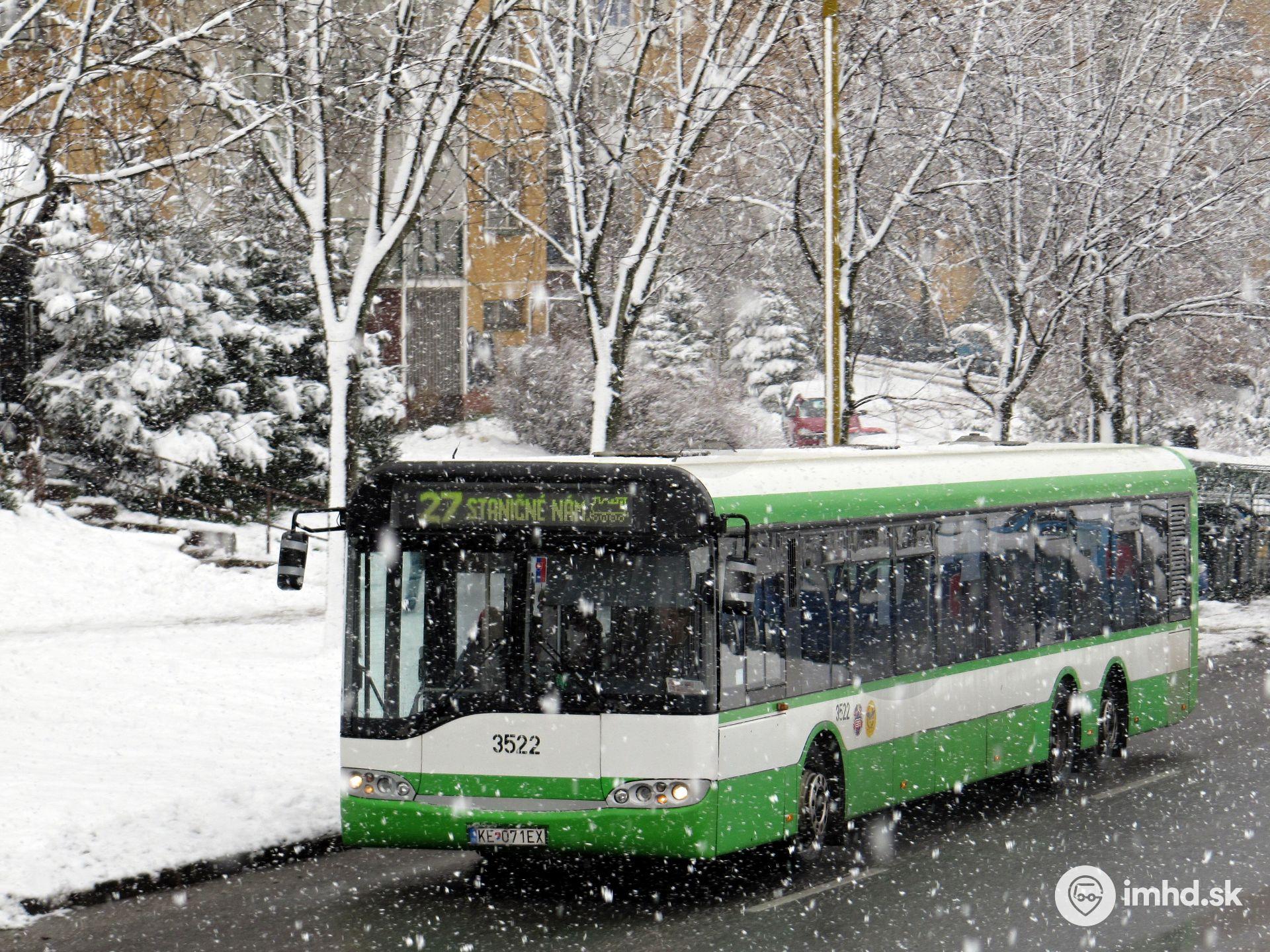 Aj napriek hustejšiemu sneženiu sa #3522 chystá vyraziť hore kopcom medzi zastávkami Berlínska a Hanojská.