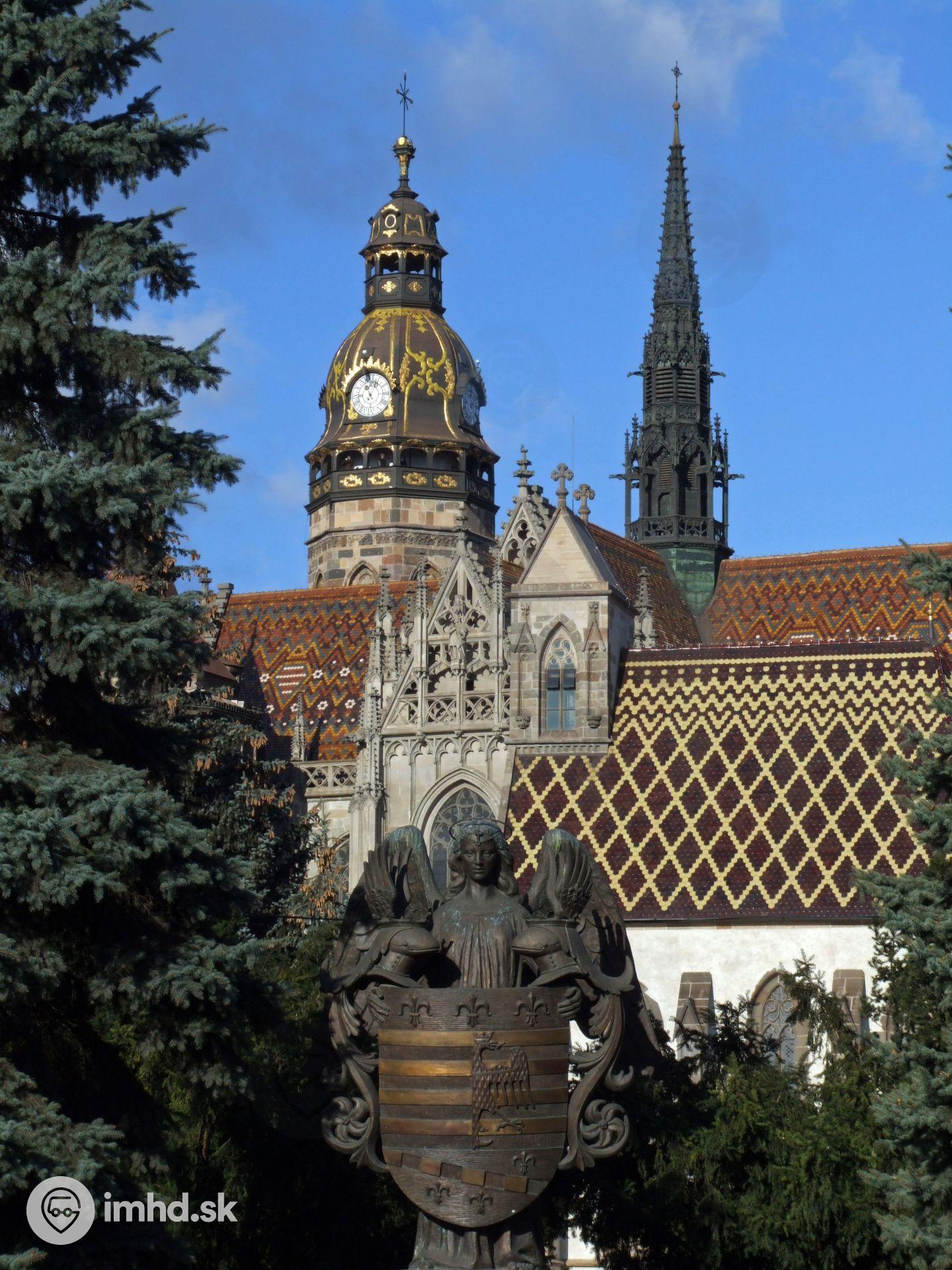 Kaplnka sv. Michala a Dóm sv. Alžbety spolu s erbom mesta.
