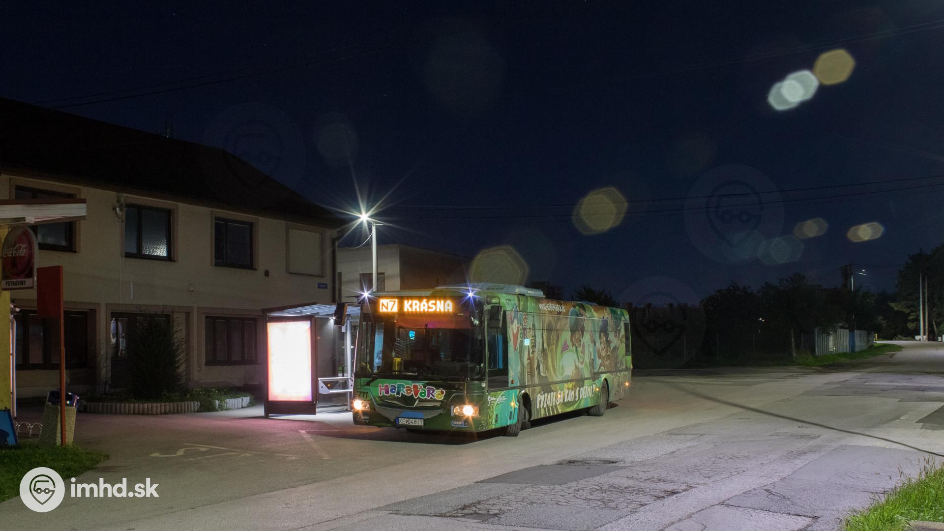 #5711, route N7, Opátska ul., zastávka Krásna
