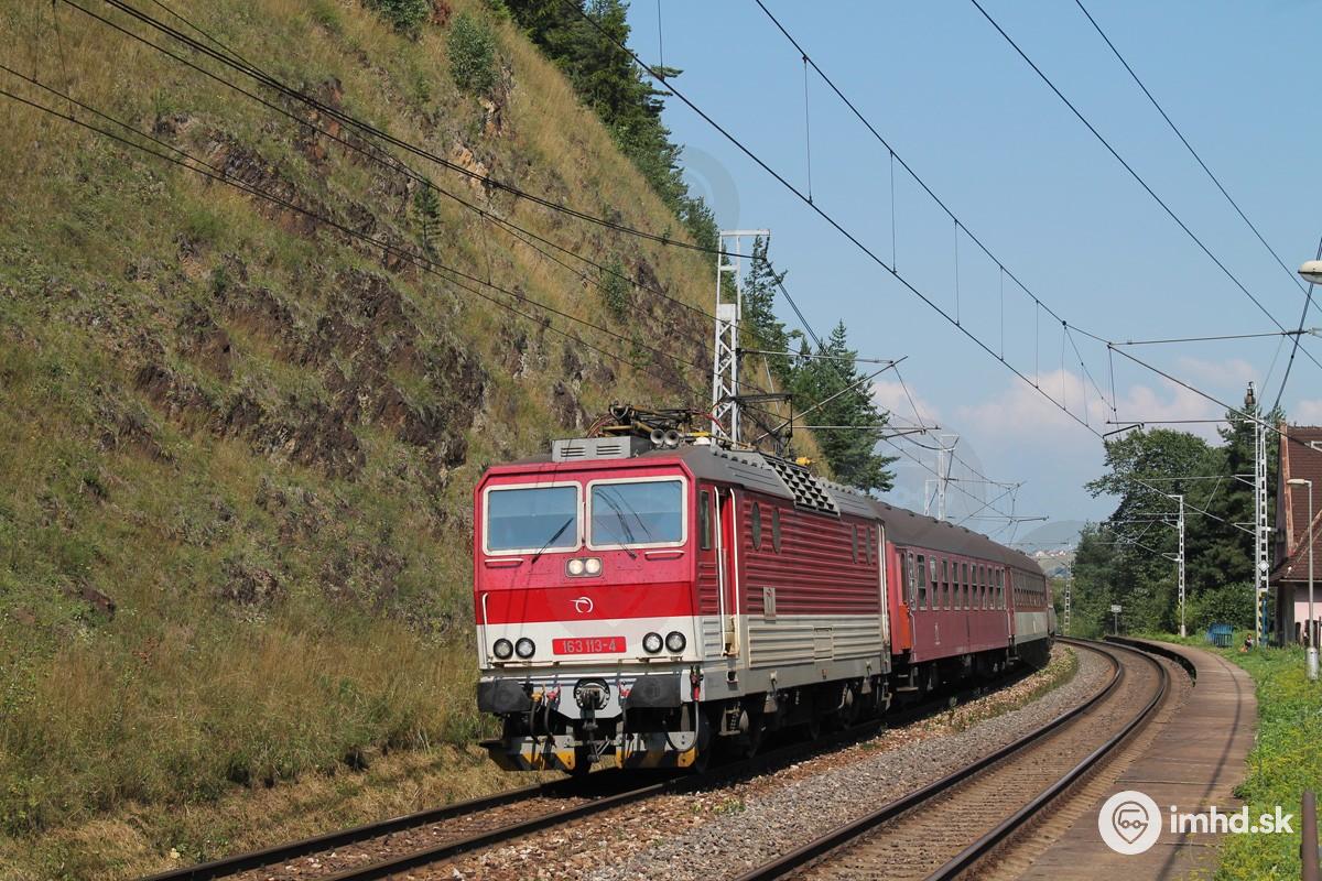 Osobný vlak na čele s #163.113 prechádza zastávkou Spišský Štiavnik
