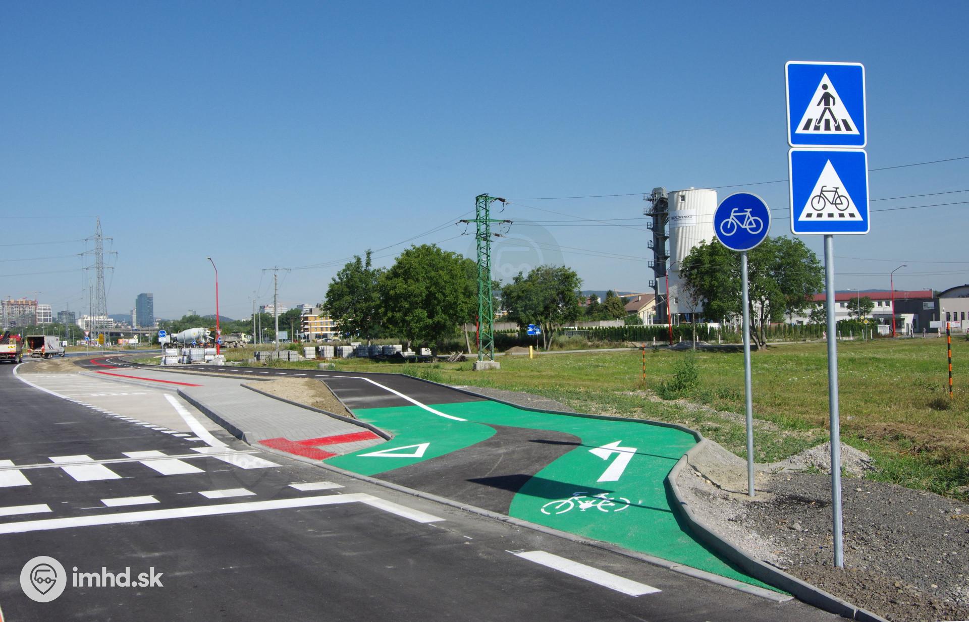 Nová zastávka Terminál v smere do centra a nová cyklotrasa okolo novej okružnej križovatky na Slovnaftskej ulici