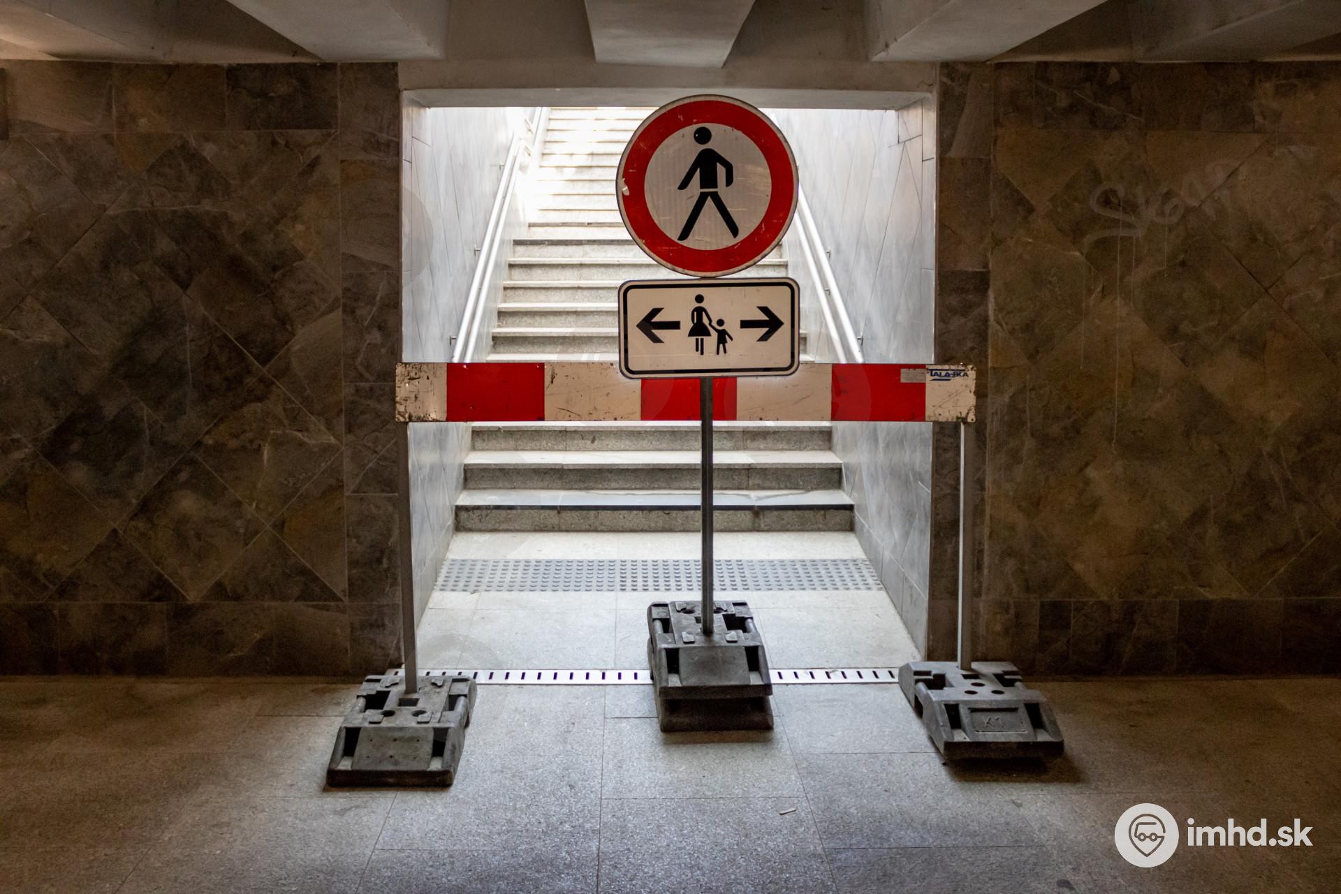 Dočasne uzavretý prístup z podchodu na nástupištia združenej zastávky Záluhy počas ich opravy.