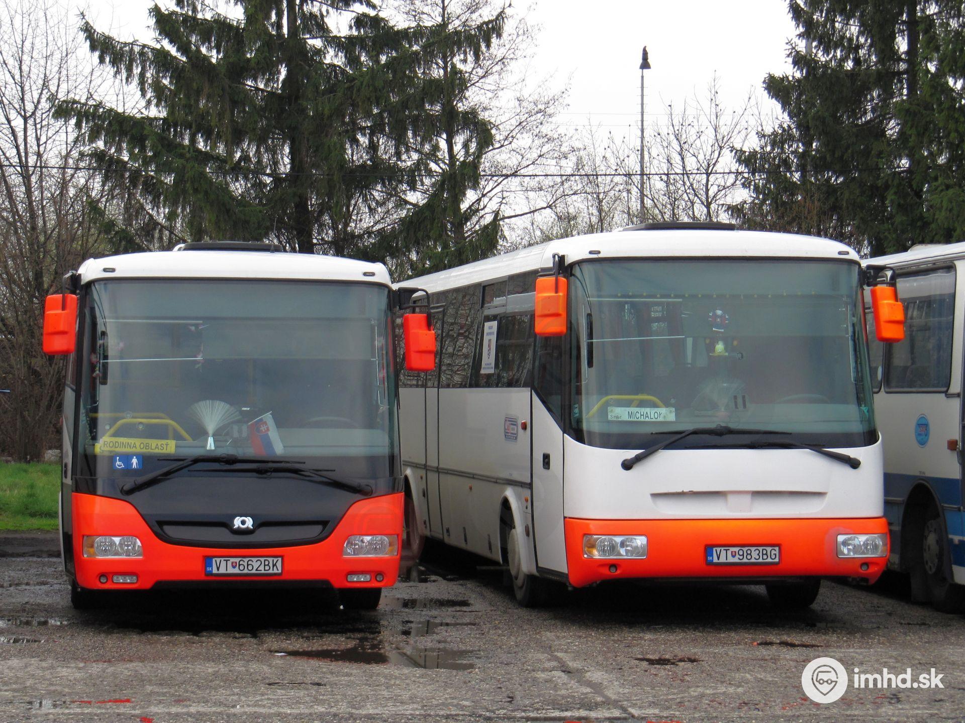 SOR CN 9,5 #VT-662BK v spoločnosti SOR C 10,5 #VT-983BG počas obeda na stanici.