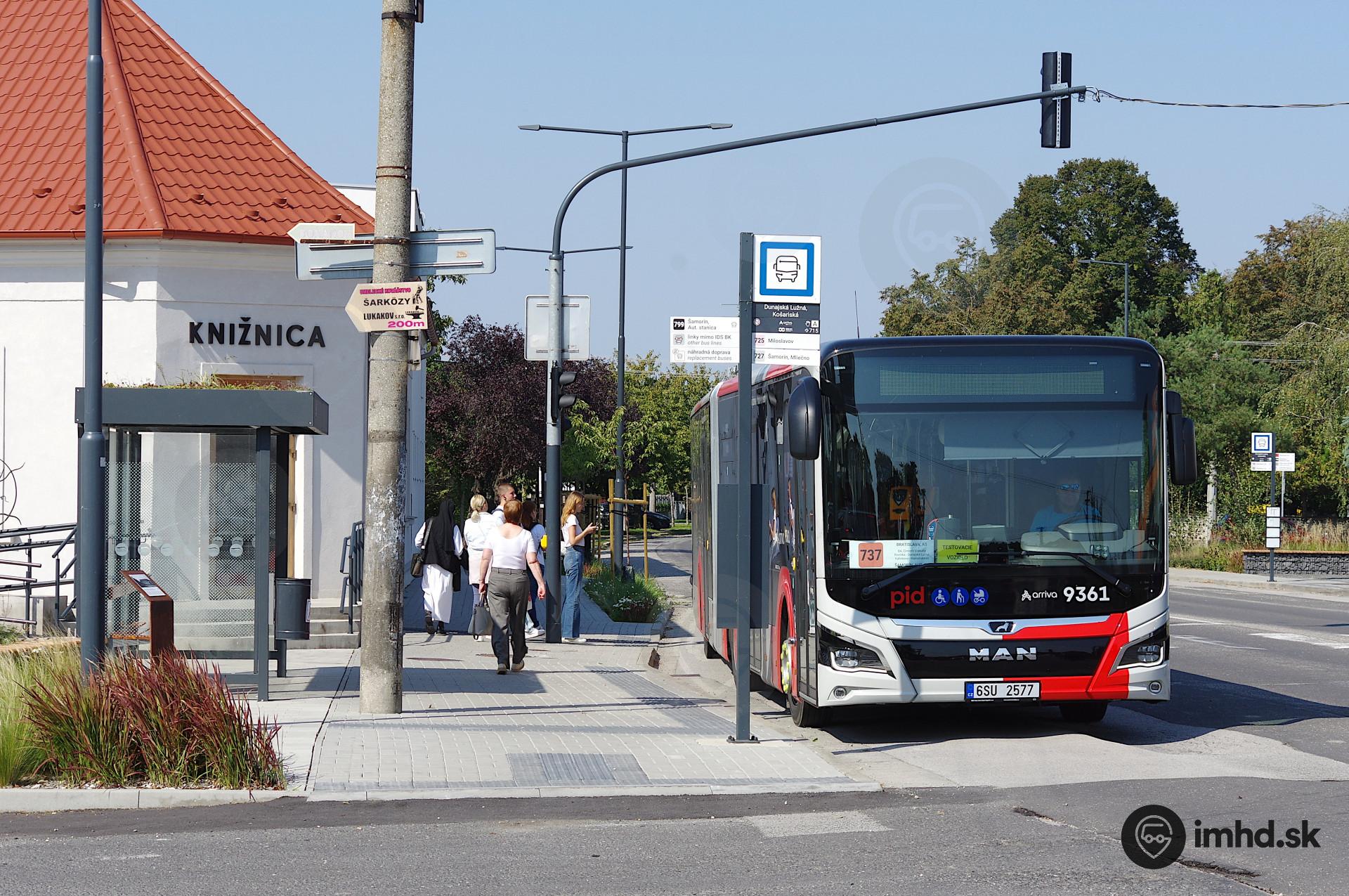 #8999, #9361, route 737, Dunajská Lužná, Nám. sv. Martina, zastávka Dunajská Lužná, Košariská