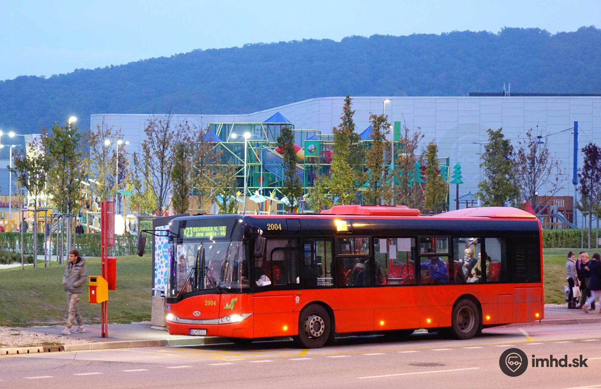 #2004, route X23, Cesta II/505, zastávka Bory Mall