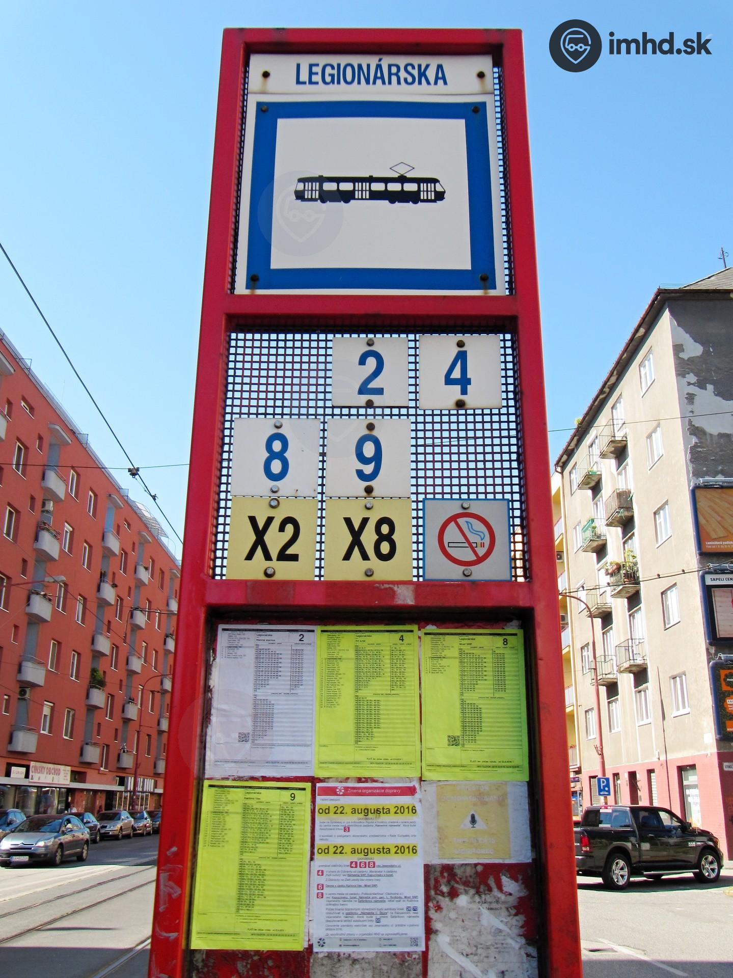 Route 2, 4, 8, 9, X2, X8, Krížna ul., zastávka Legionárska