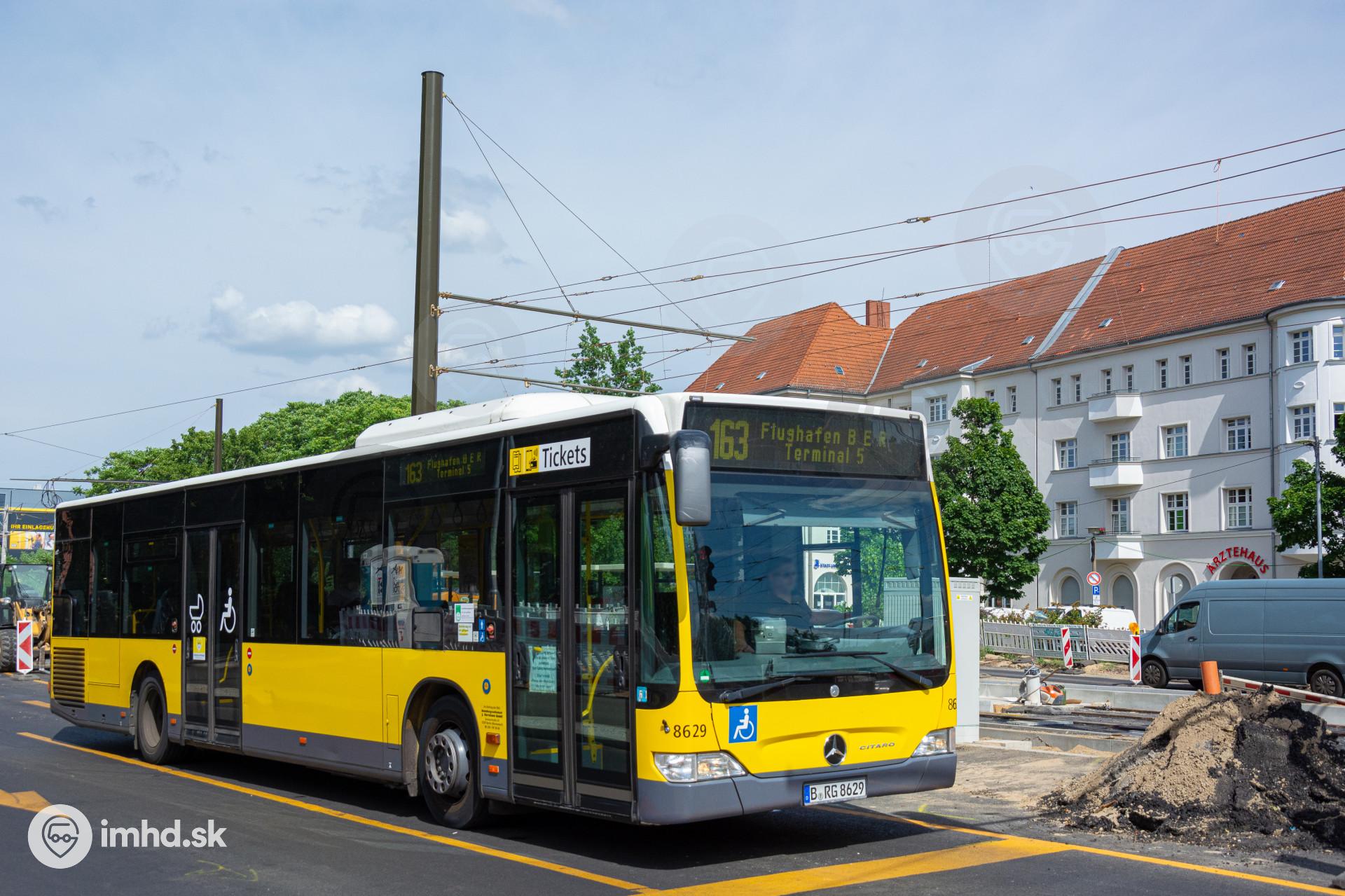 Mercedes-Benz Citaro II #8629 prechádza okolo električkovej trate vo výstavbe