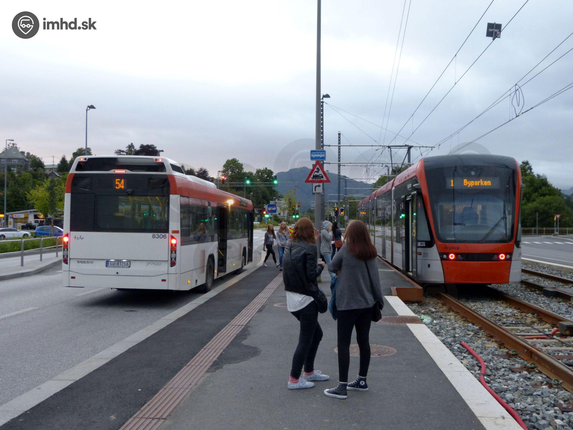 Prestup na hrane medzi autobusom Volvo B9L / Volvo 7700 a električkou Variotram