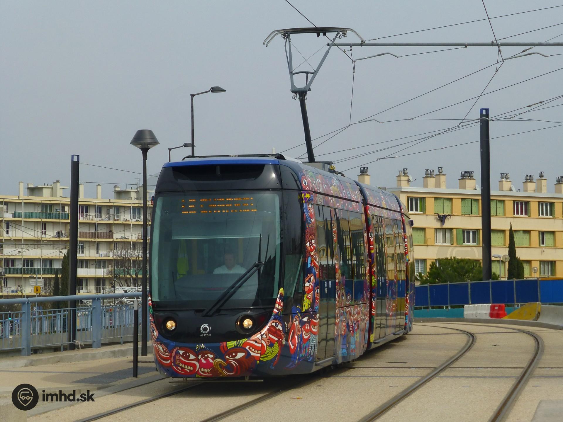 Električka Alstom Citadis Compact prichádza do zastávky Martin Luther King.