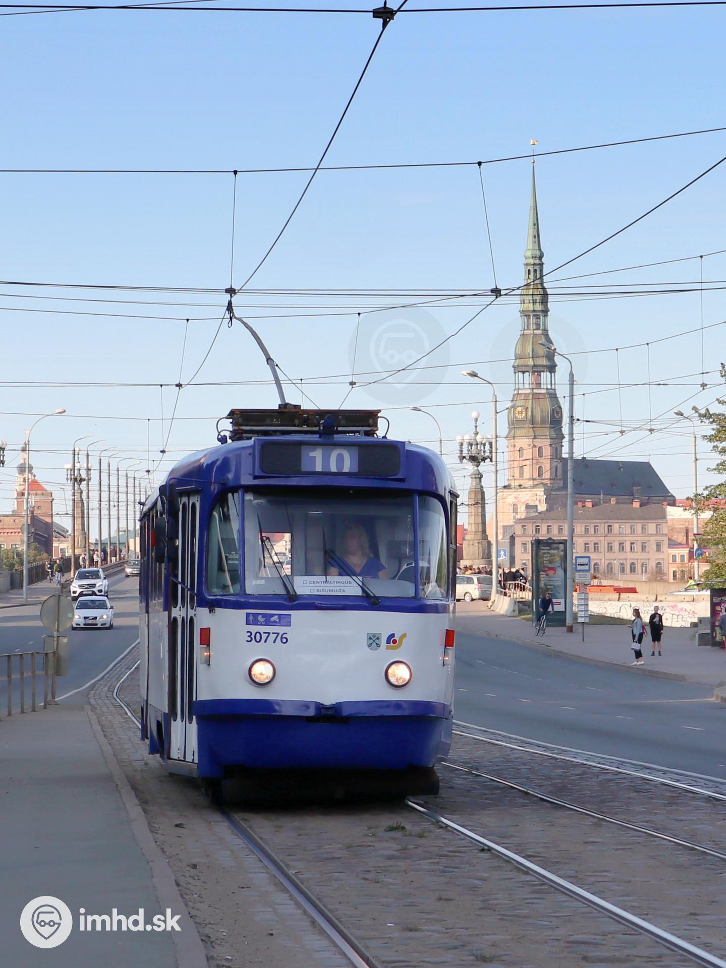 Električka ČKD Tatra T3A #30776 prichádza na zastávku Nacionālā bibliotēka.