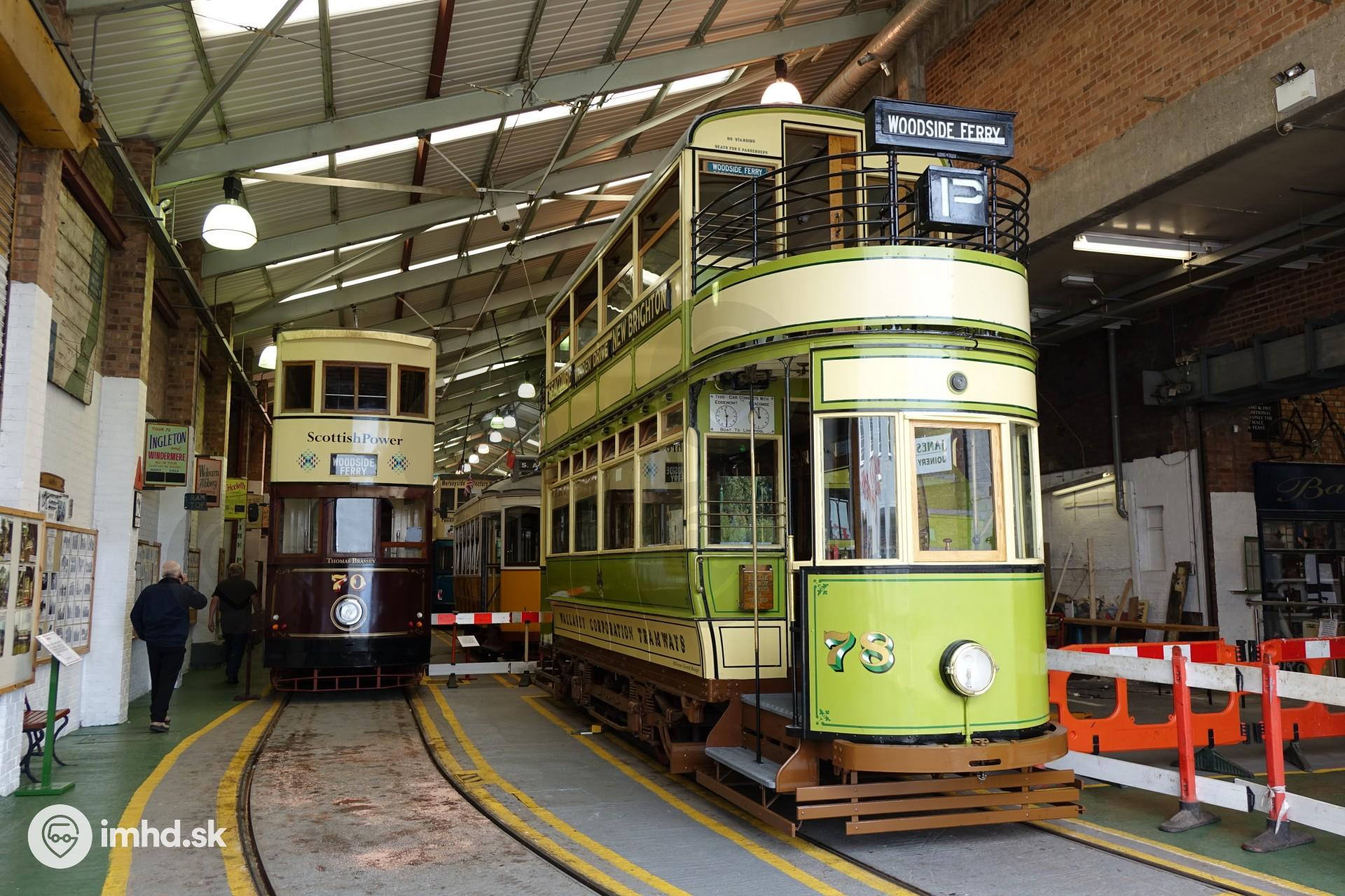 Električky #70 a 78 v múzeu. #70 bola vyrobená v roku 1992 v Hongkongu pre muzeálnu prevádzku vo Wirral. #78 z roku 1920 pôvodne jazdila vo Wallasey.