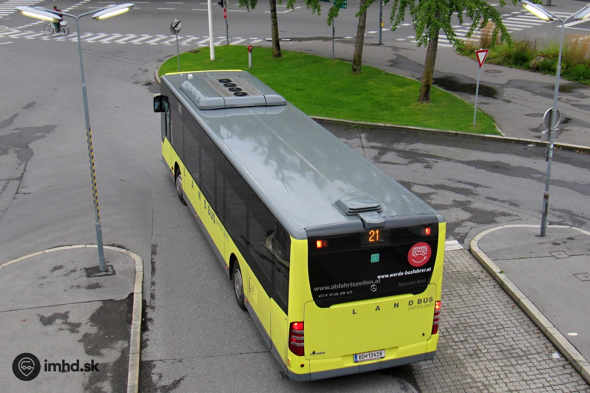 Citaro #BD 13428 dopravcu Postbus odchádza z terminálu pri Bregenz Bhf