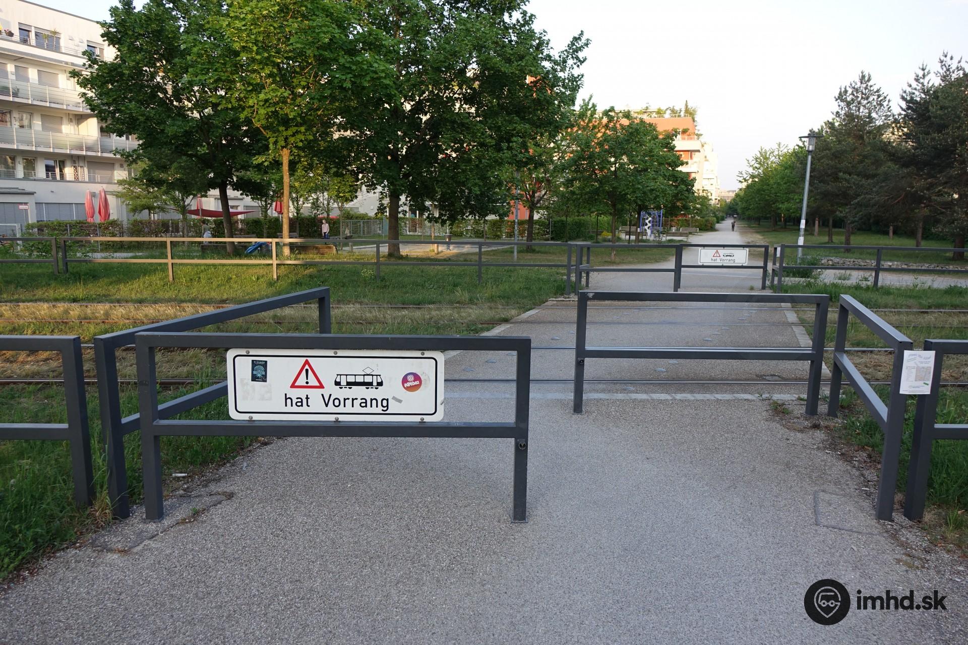 Križovanie chodníka s električkovou traťou.
