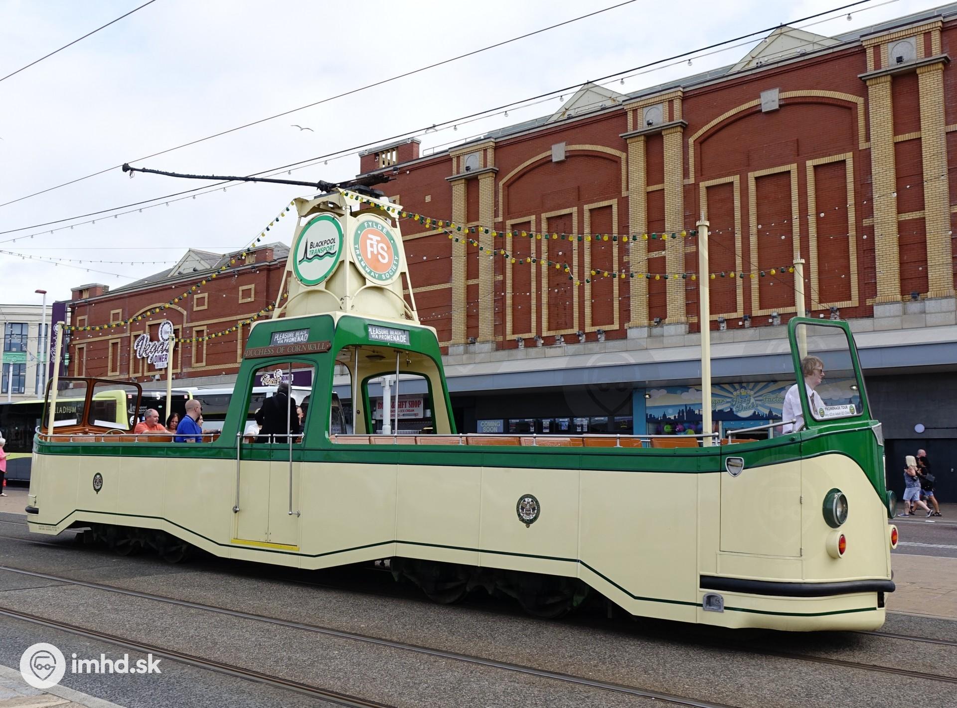 Historická električka v Blackpoole, ktorý ako jediný prežil likvidovanie tratí prvých električkových systémov. V rokoch 1962 - 1992 bol jediným britským mestom s prevádzkovanou električkovou dopravou.