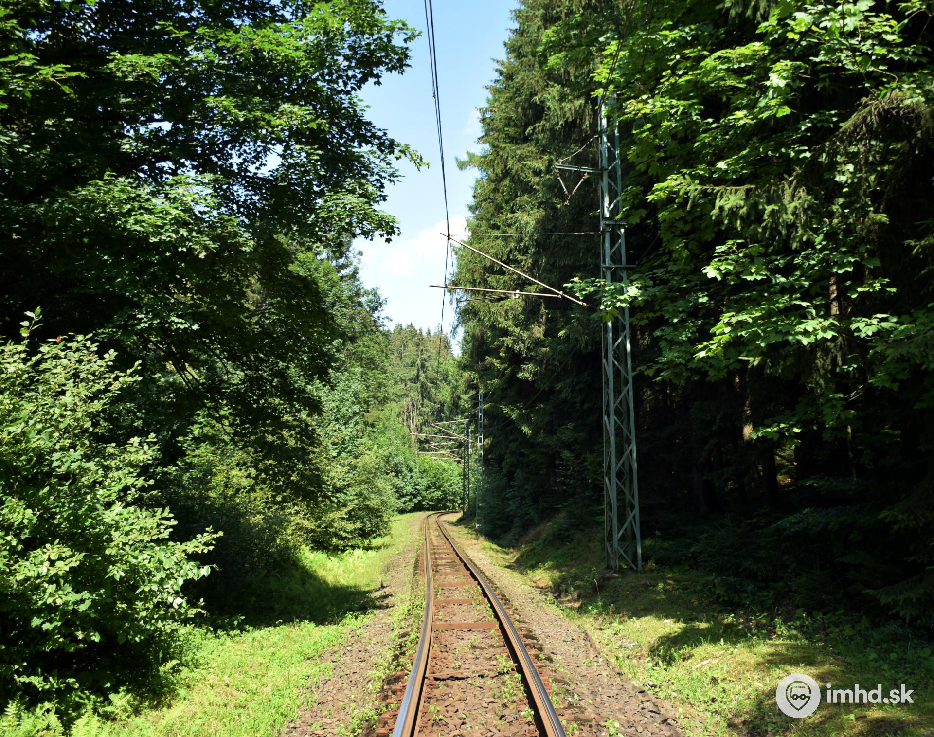 Traťový úsek medzi zastávkami Nový Svět a Zelené údolí.