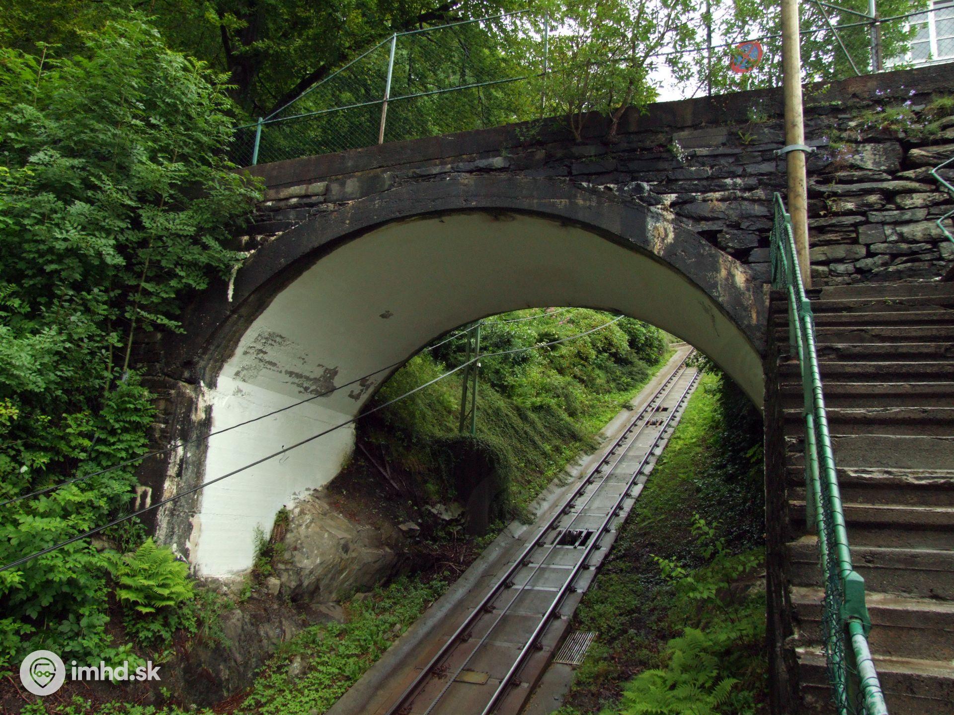 Ponad trať lanovky vedú nadjazdy a v spodnej časti sa nad ňou nachádza obytná zástavba.