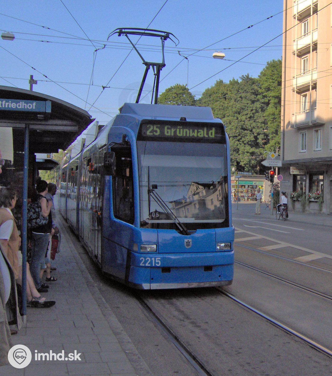 Električka #2215 najdlhšieho typu (ADtranz (Bombardier), Siemens GT8N2 R3.3) na linke do Grünwaldu.