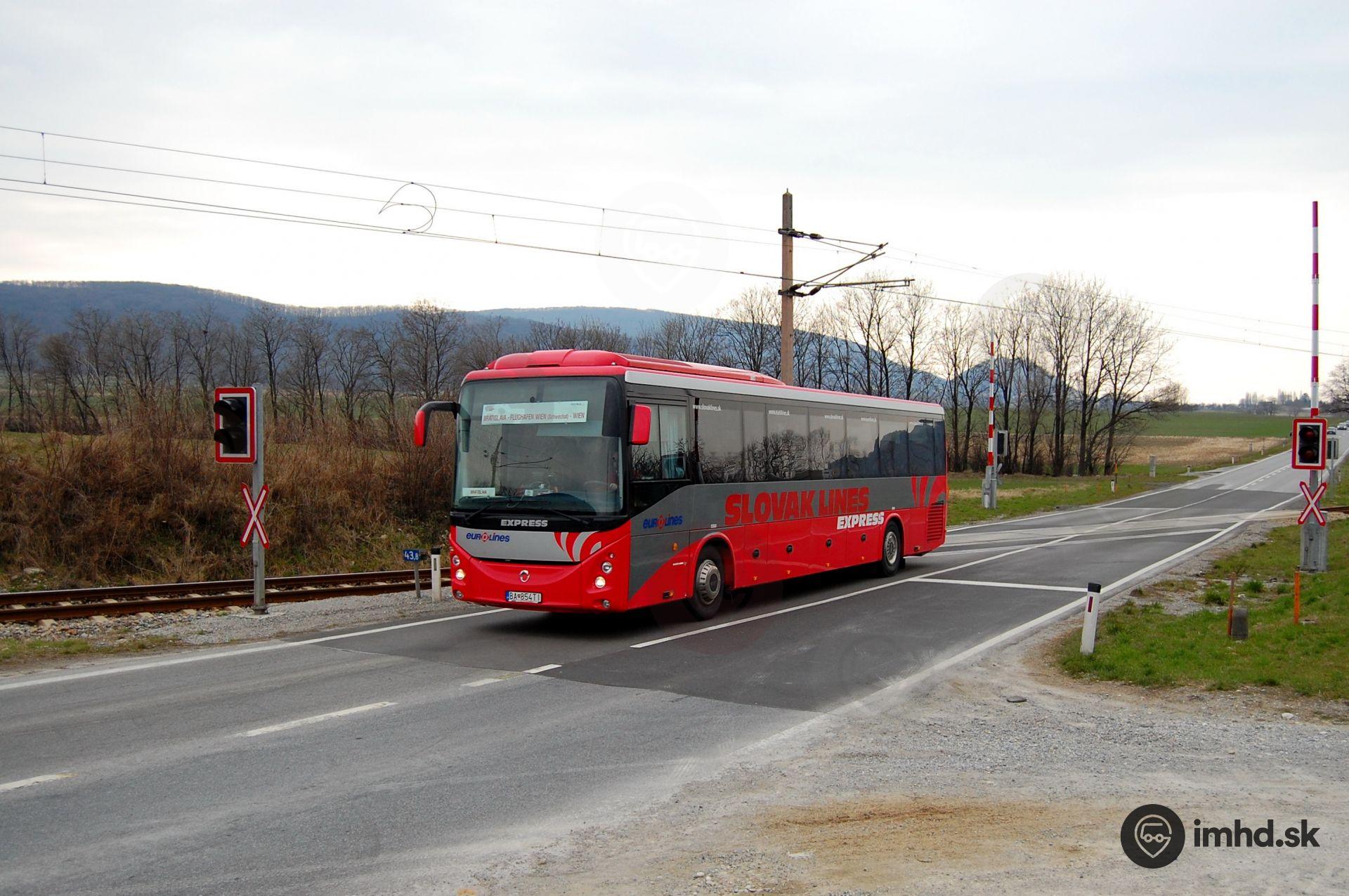 Aktívnou konkurenciou linky 901 do Hainburgu je dopravca Slovak Lines. Na fotografii je zachytený Irisbus Evadys, ktorý ide len niekoľko sekúnd pred SORom C 10.5 na linke 901.