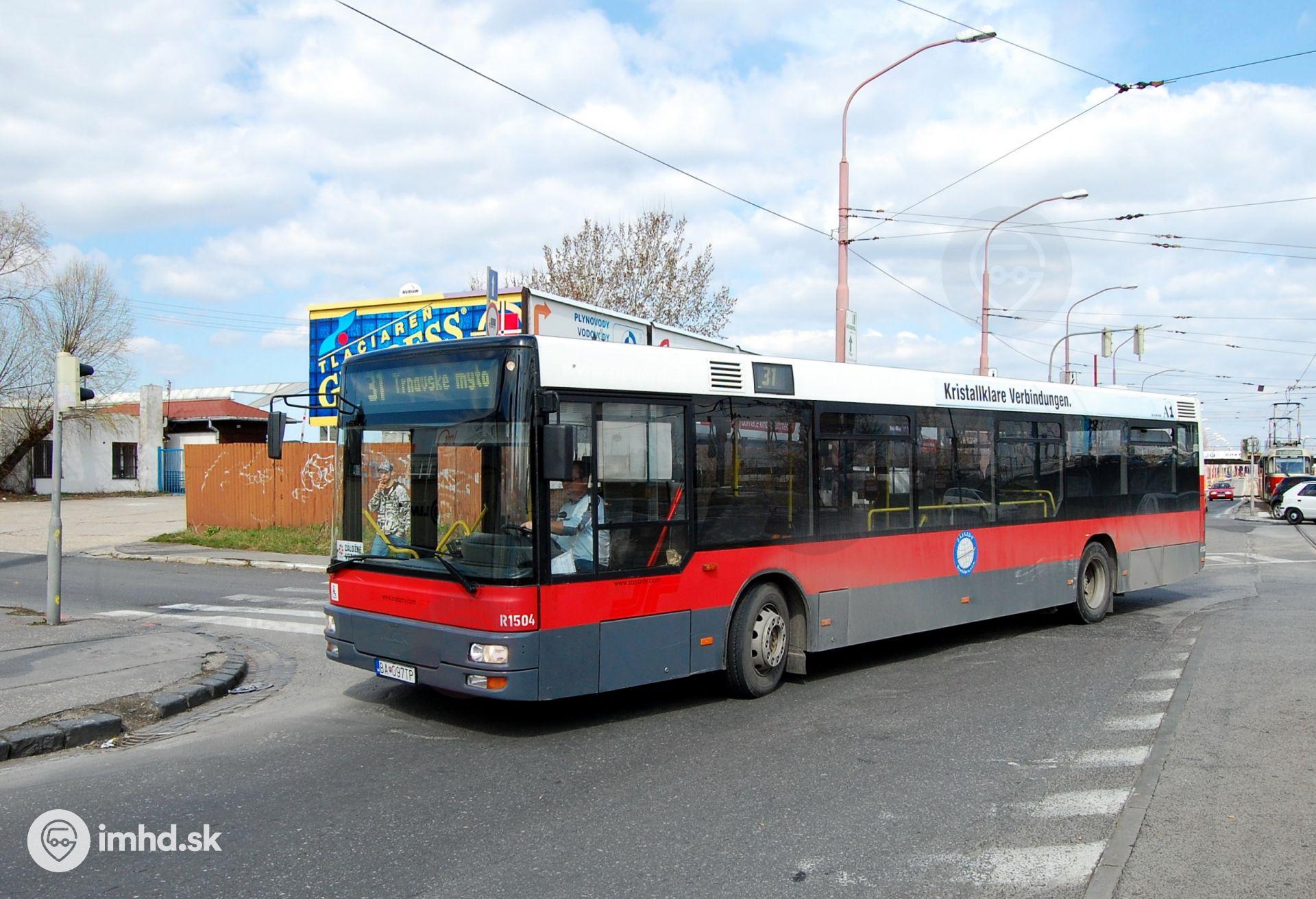 Autobus náhradnej dopravy X2 smerujúci na Vazovovu označený linkou 31 na Trnavské mýto - aj takto môe vyzerať náhradná doprava za električky ako ju predvádza firma Zájazdy Bratislava.