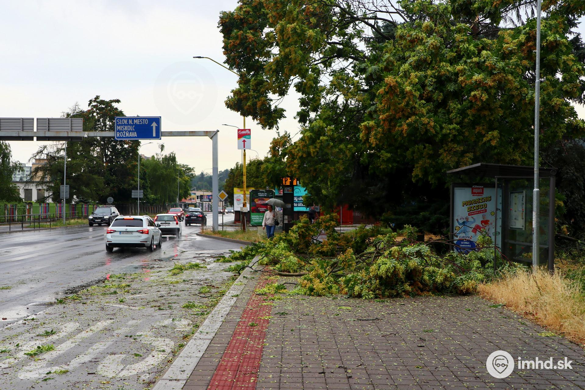 Búrkou polámané konáre zablokovali priestor zastávky Okresný úrad