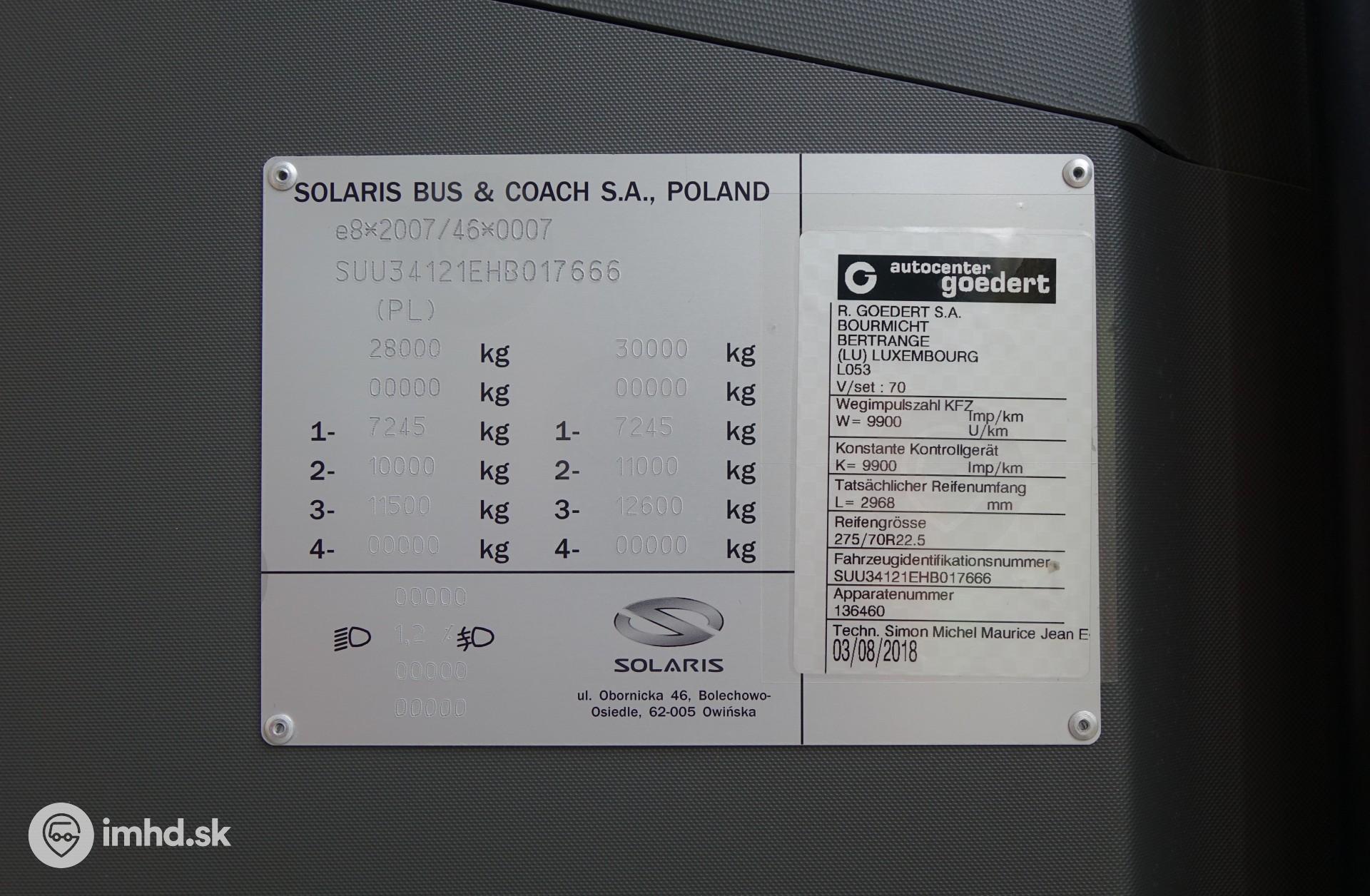 Výrobný štítok skúšobného elektrického Solarisu.