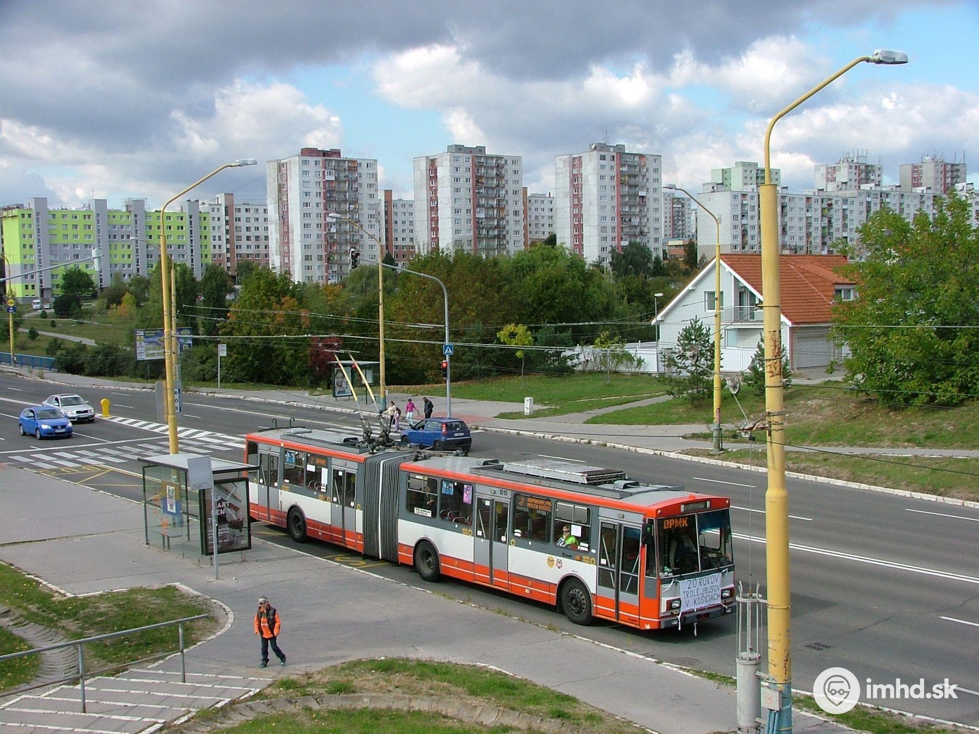 Trolejbus a Sídlisko KVP. Trolejbusy tu jazdia od roku 1998.
