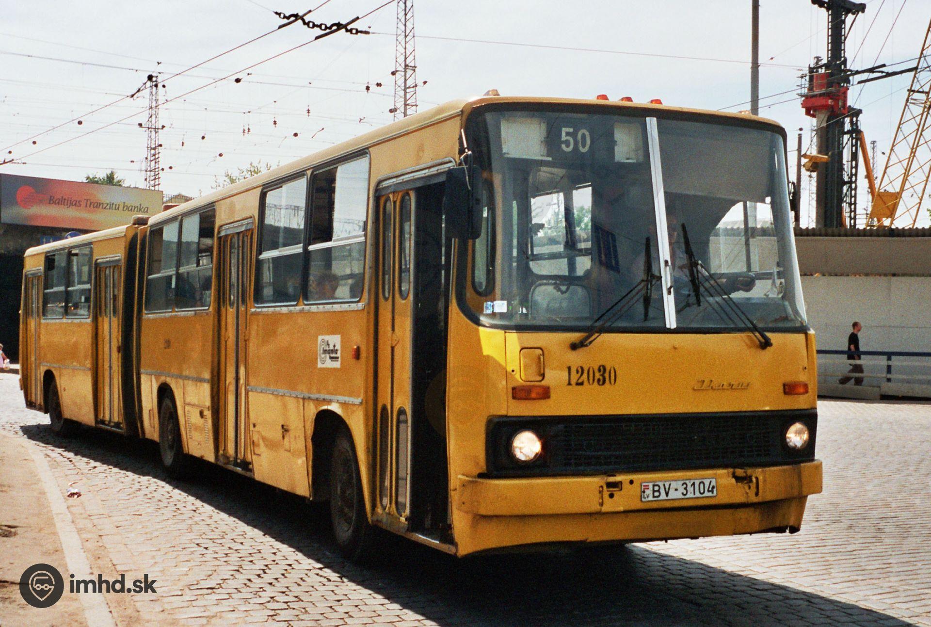 Staručký Ikarus 280 #12030 na linke 50 odbočuje z Gogoļa iela.