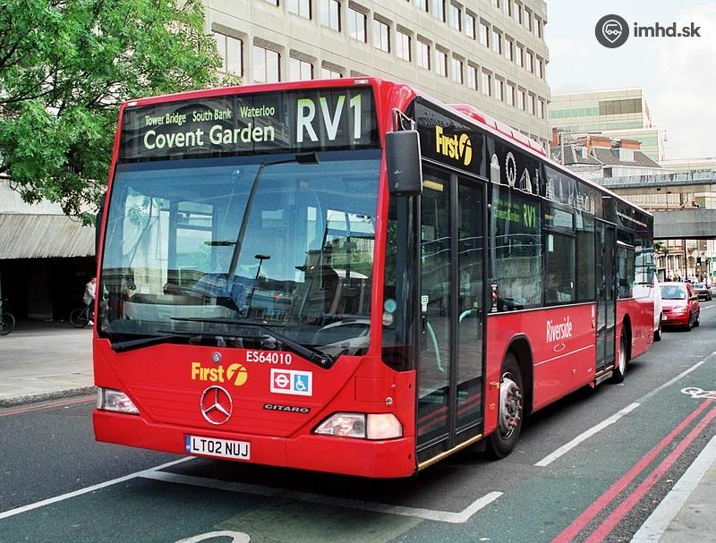 | Autobus Mercedes Benz O530 Citaro z roku 2002 spoločnosti First na linke RV1 na Tooley Street pri stanici metra London Bridge. | |
