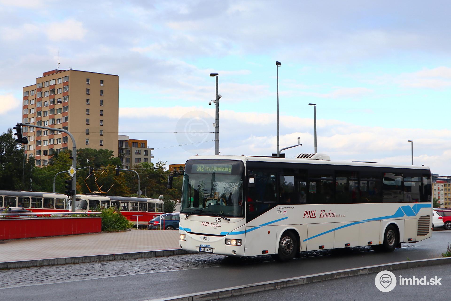 Irisbus Crossway 12M #1255 dopravcu Pohl Kladno (ex Bodos ex Vydos Bus) prichádza ako spoj linky 342 zo Slaného k železničnej stanici Praha - Veleslavín.