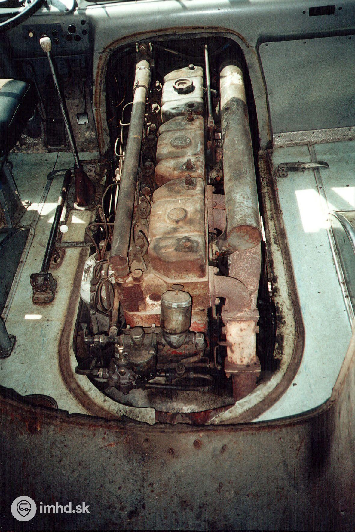 Motor v autobuse Škoda 706 RTO #236. Napriek svojmu mierne hrdzavému vzhľadu ide ako hodinky. Má aj všetky pôvodné súčiastky, iba tlakový regulátor je z Ikarusu.