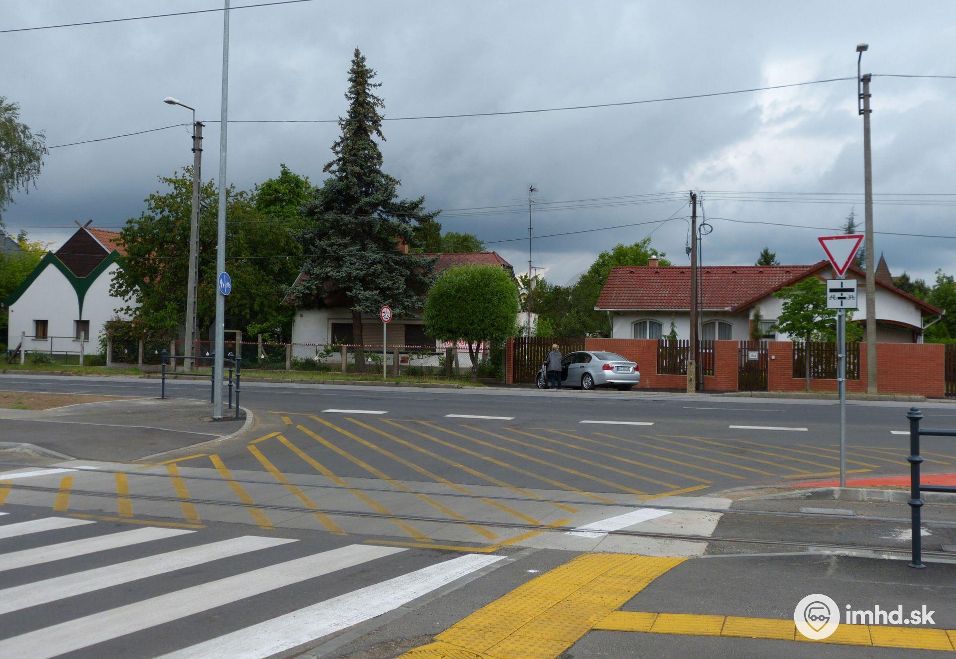 Prejazd cez električkovú trať spolu s vyznačením priestoru so zákazom zastavenia.