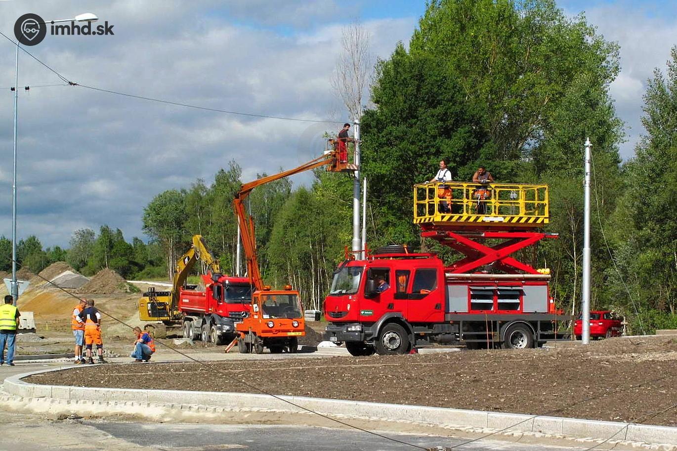Výstavba nového trolejového vedenia v novej križovatke