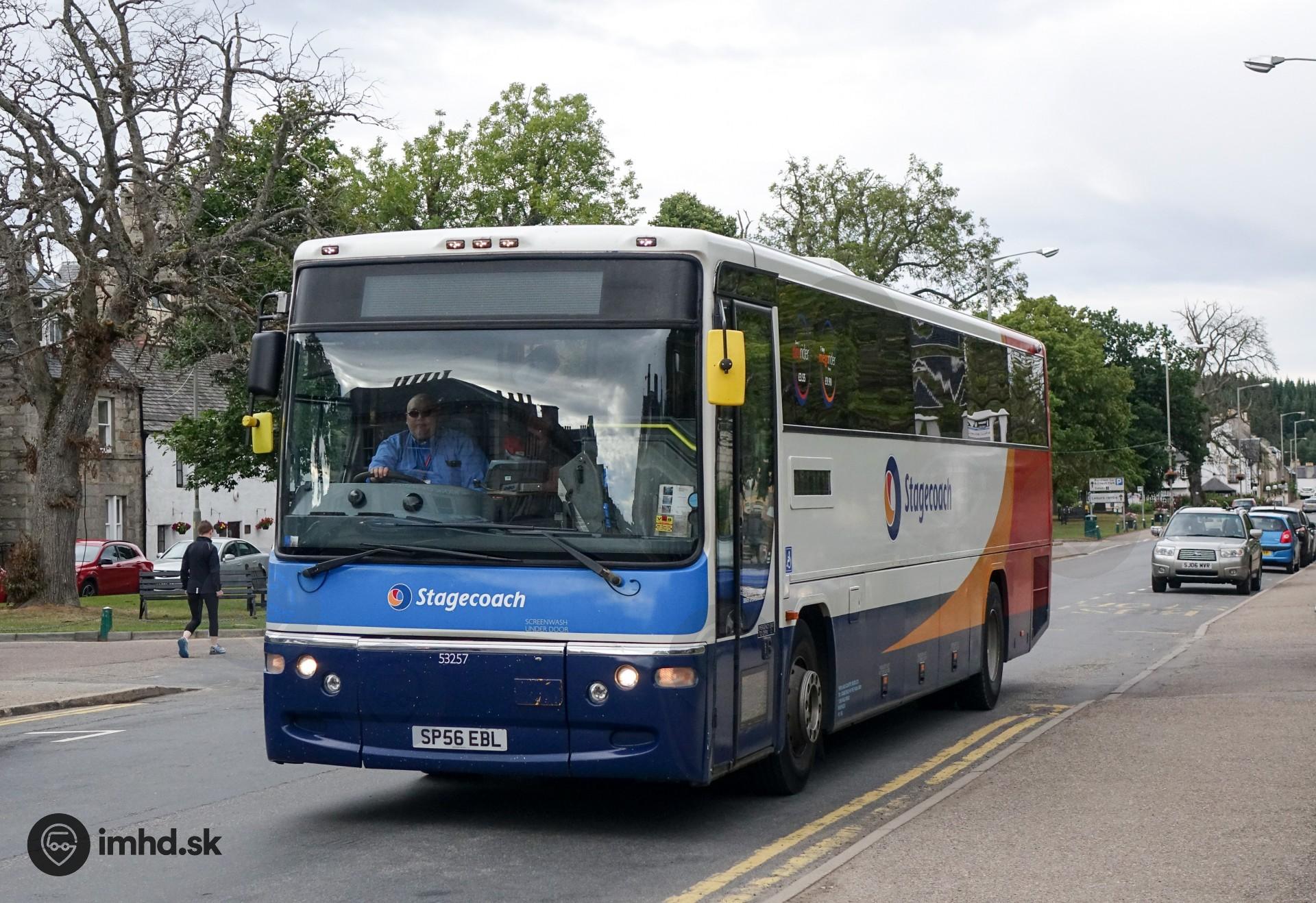 Prímestský autobus Plaxton Profile / Volvo B7R v škótskom mestečku Grantown-on-Spey