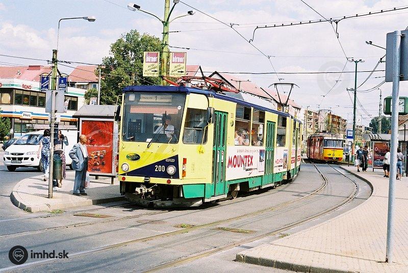 Prvá KT8D5 v Miskolci - 200 (ex. Košice č. 539) odchádza zo zastávky Újgyőri főtér.