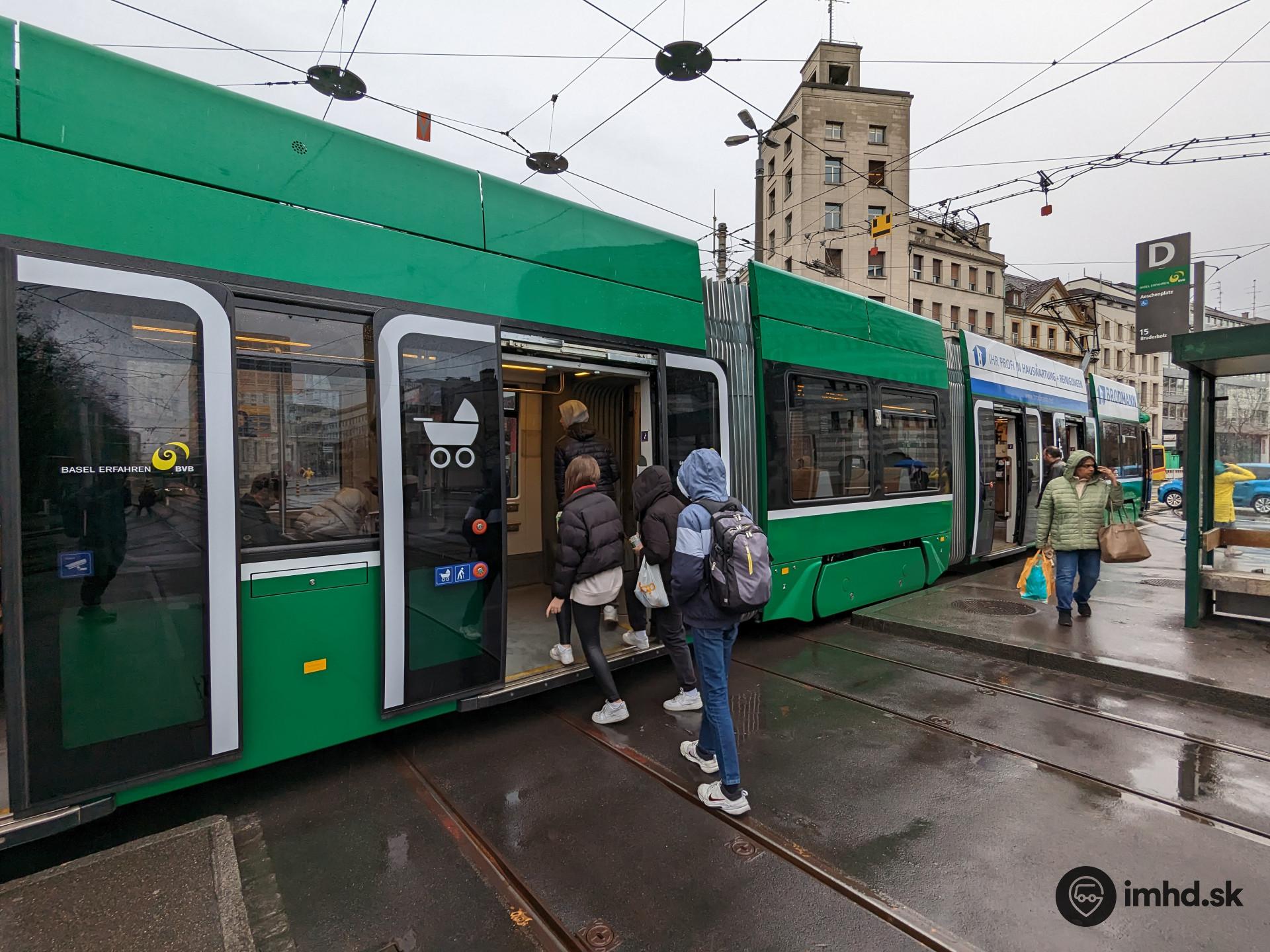 Križovatka a súčasne zastávka Aeschenplatz s nástupom (aj) z úrovne trate.