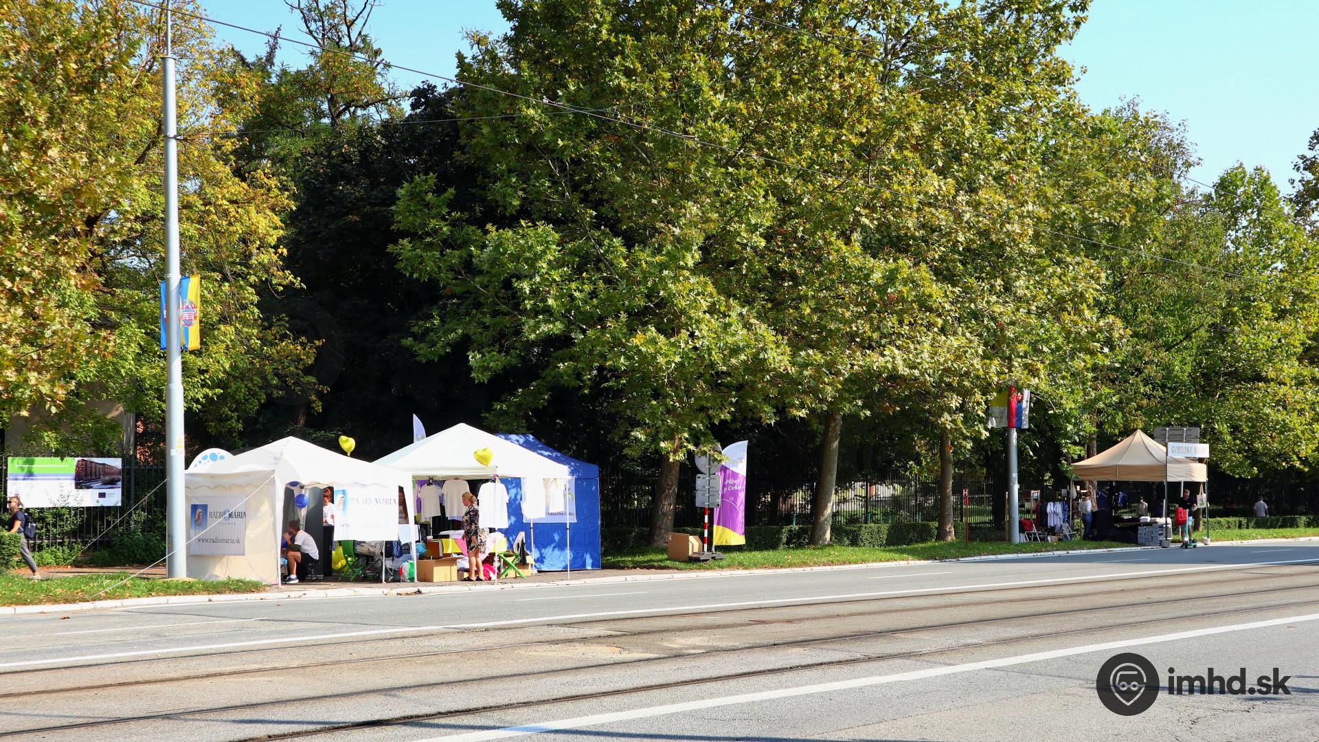 Uzavretý úsek Komenského ul. pozdĺž UVLF obsadili stánky